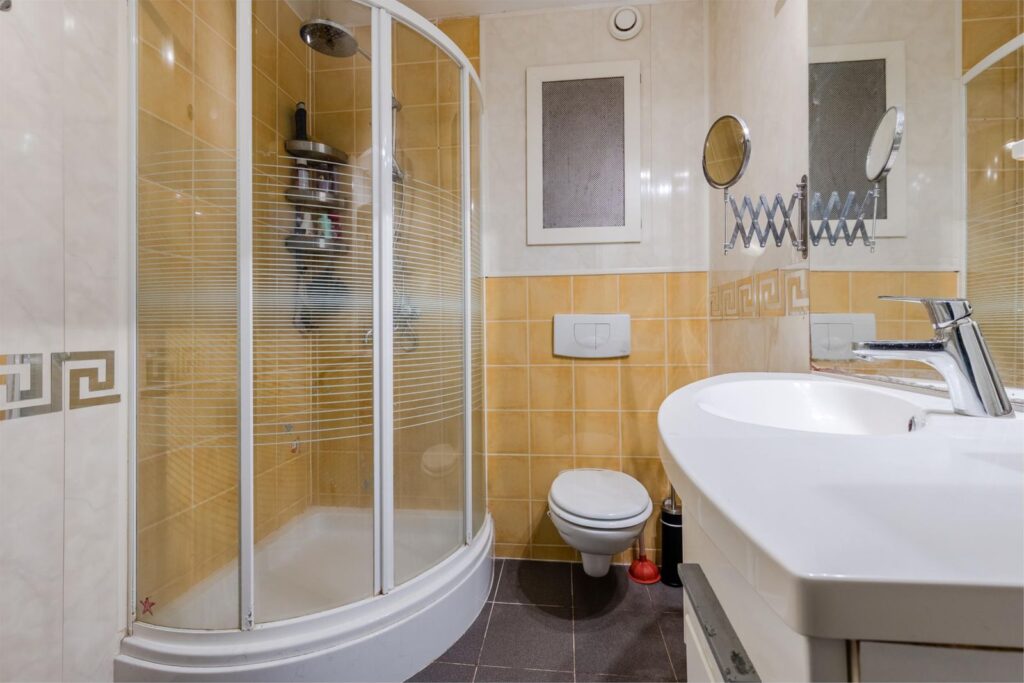 Op deze verdieping bevindt zich ook een ruime en sfeervolle badkamer voorzien van een inloopdouche, een wastafelmeubel met onderkastjes, een tweede toilet en een radiator.