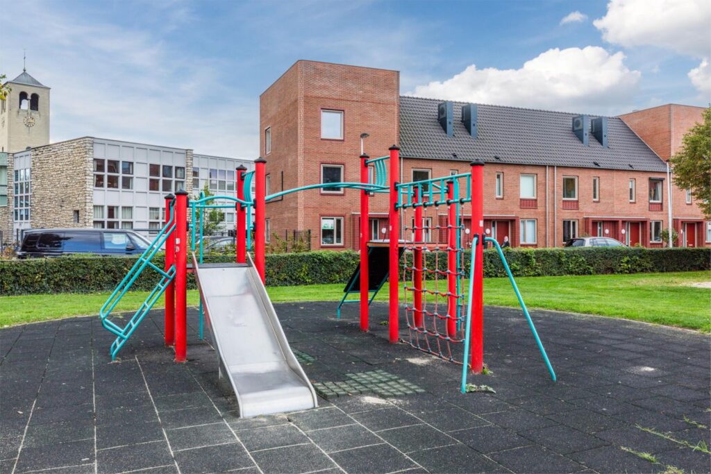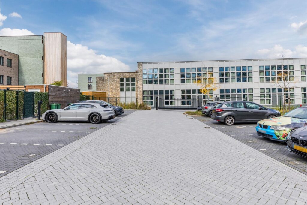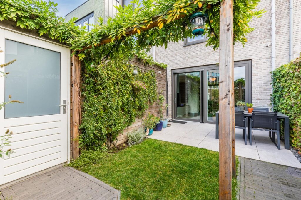De woning beschikt over een zonnige achtertuin met groene uitstraling – perfect voor lange zomeravonden of spelende kinderen. Aan de voorzijde zorgt een kleine, maar verzorgde groene voortuin voor een vriendelijke en uitnodigende aanblik. Op het afgesloten binnenterrein bevindt zich een eigen parkeerplaats, waar ook (buur)kinderen samen veilig kunnen spelen.