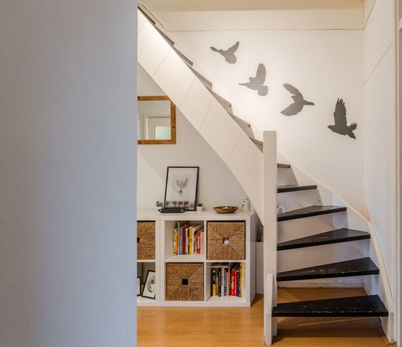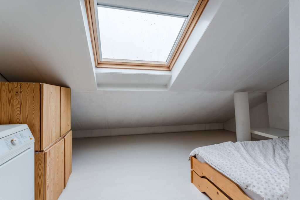 Op deze verdieping is door slim gebruik te maken van het schuine dak veel opslagruimte gecreëerd. Daarbij is er op de begane grond nog een berging van zo’n 10 m² en heeft de woning meerdere inbouwkasten.