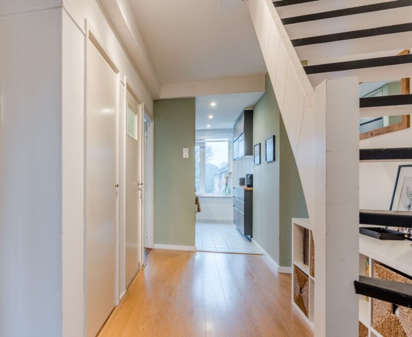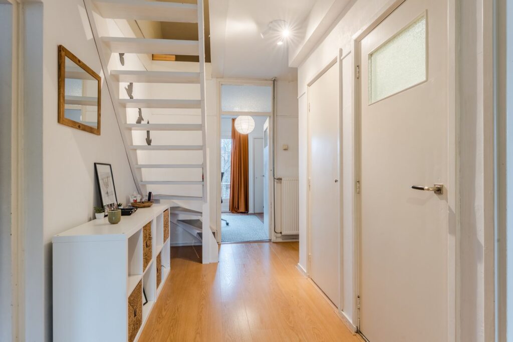Bij binnenkomst in de hal voel je meteen hoeveel ruimte de woning biedt. Je vindt hier de in 2023 gerenoveerde keuken met alle benodigde inbouwapparatuur. Ook de badkamer en toilet zijn op deze verdieping in 2023 volledig vernieuwd. Daarnaast vind je hier twee ruime slaapkamers aan beide kanten van de woning.