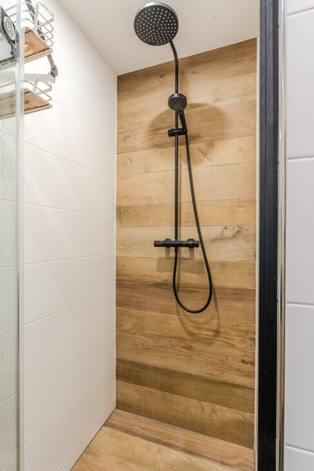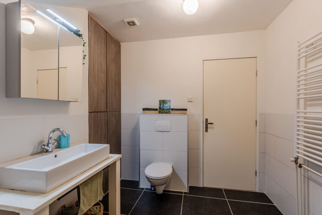 Clever use of the sloping roof has created a large amount of storage space on this floor. In addition, there is a storage unit of approximately 10 m² on the ground floor, and the apartment features several built-in closets.