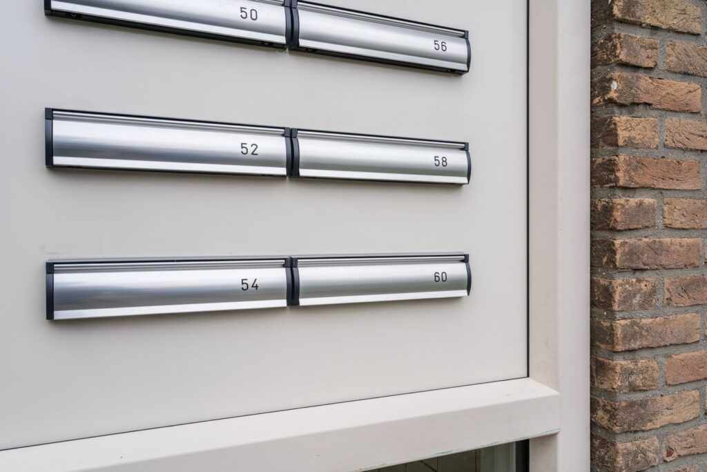 Gemeenschappelijke entree met toegang tot de brievenbussen, intercom, bergingen en het trappenhuis.