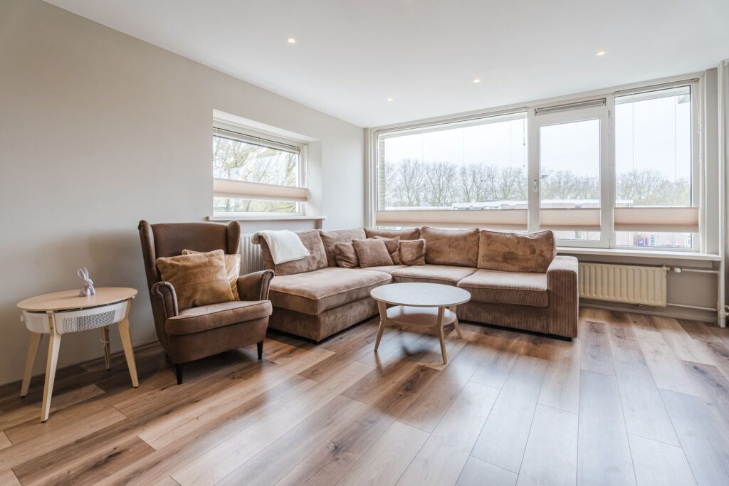 Het appartement is, met uitzondering van de natte ruimtes, voorzien van een nette laminaatvloer en strak spuitwerk op zowel wanden als plafonds.
