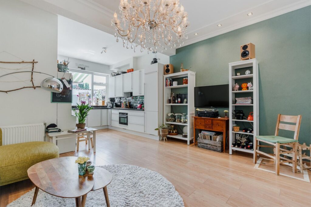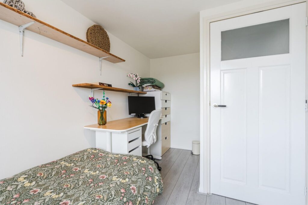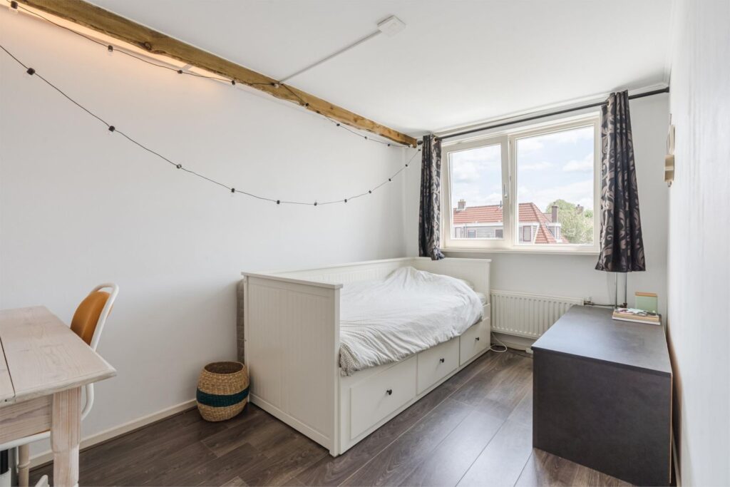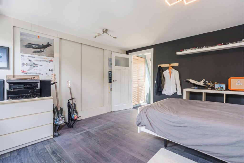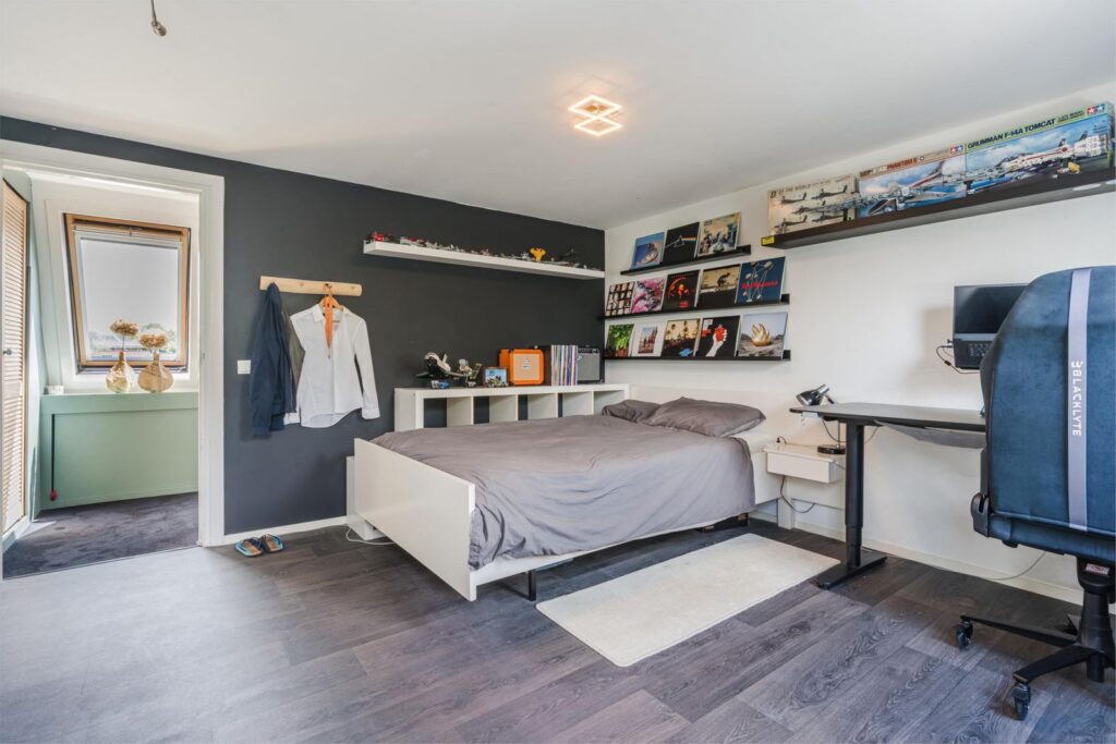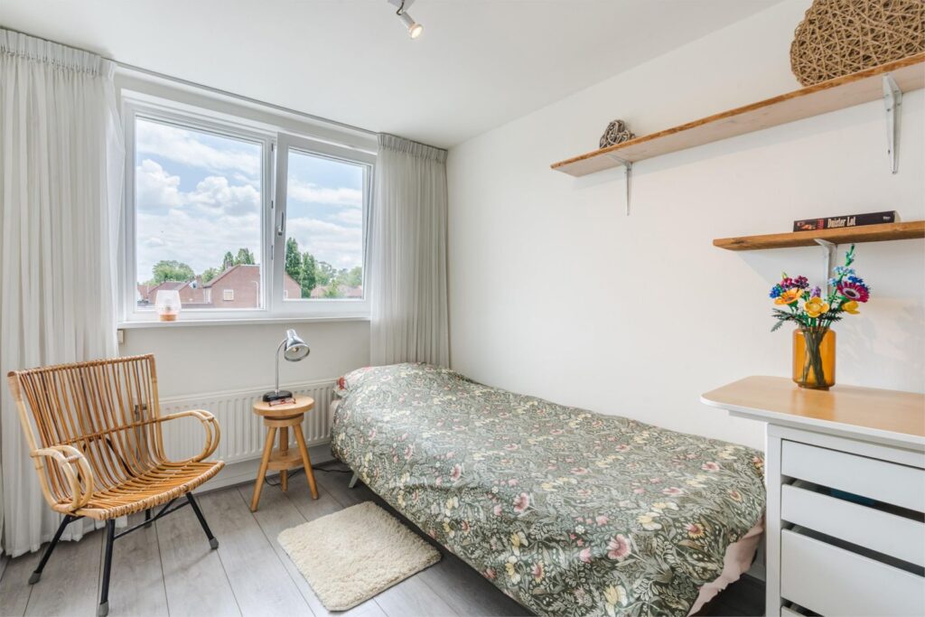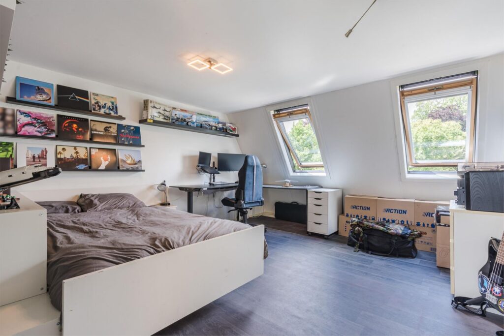 De woning beschikt over maar liefst vier slaapkamers, waarvan één op de tweede verdieping – ideaal als extra slaapkamer, werkruimte of hobbykamer. De begane grond biedt een lichte, ruime woonkamer met open keuken, perfect voor gezellige avonden of etentjes met vrienden en familie. De keuken en woonkamer vormen één geheel, wat zorgt voor een open en ruimtelijk gevoel.