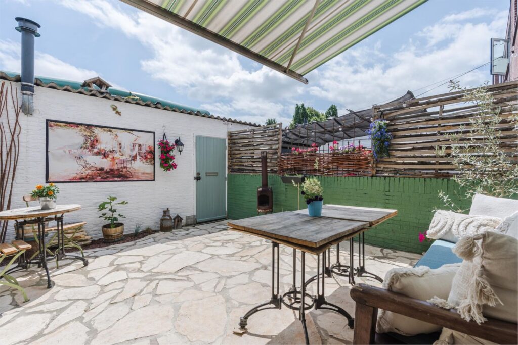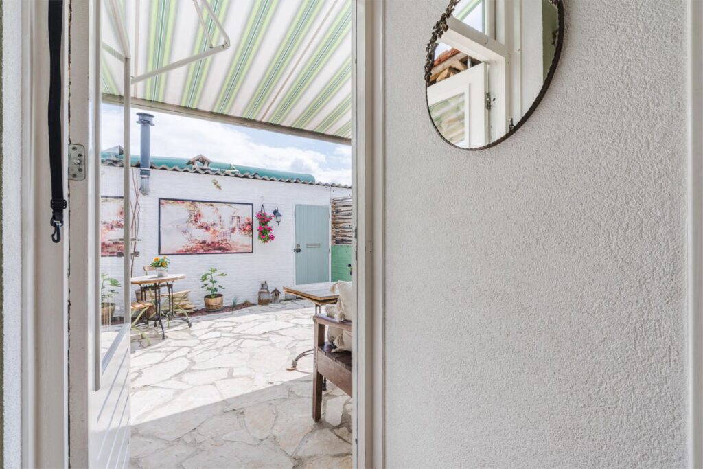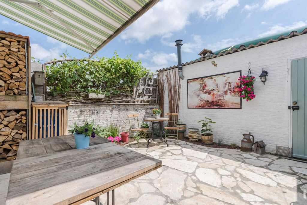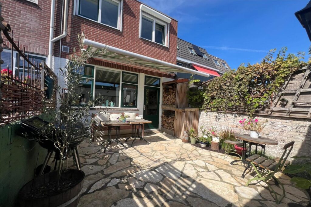 De kleine, knusse stadstuin aan de achterzijde is een heerlijke plek voor een kop koffie in de zon of een ontspannen avond buiten. Via de tuin bereik je de aangebouwde schuur, die op zijn beurt toegang geeft tot een achterom via het gangpad – handig voor fietsen of tuinspullen.