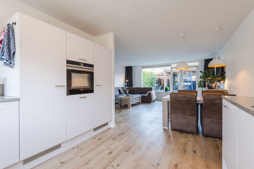 Op een prettige en rustige locatie staat deze goed onderhouden en verrassend ruime woning, klaar voor nieuwe bewoners. De woning combineert comfort, licht en functionaliteit en is met zorg bewoond, wat direct voelbaar is bij binnenkomst. De lichte woonkamer vormt het hart van het huis en biedt volop ruimte om te ontspannen of gezellig samen te zijn. De open keuken is praktisch ingedeeld en van alle gemakken voorzien. De open keuken is volledig op maat gemaakt en vormt een echte eyecatcher in de woning. Dankzij de doordachte indeling en maar liefst vier draaicarrousels wordt de beschikbare ruimte optimaal benut. Vanuit de leefruimte is er prettig contact met de tuin, waar je heerlijk kunt genieten van rust en privacy. Op de verdiepingen bevinden zich meerdere goed bemeten slaapkamers en een nette badkamer. De tuin is een echte blikvanger met een op maat gemaakte overkapping, ideaal om ook op koelere dagen of bij een zomerse regenbui heerlijk buiten te zitten. De zolderverdieping is voorzien van een ruime dubbele dakkapel, wat zorgt voor extra lichtinval, aanzienlijk meer leefruimte en veelzijdige gebruiksmogelijkheden.