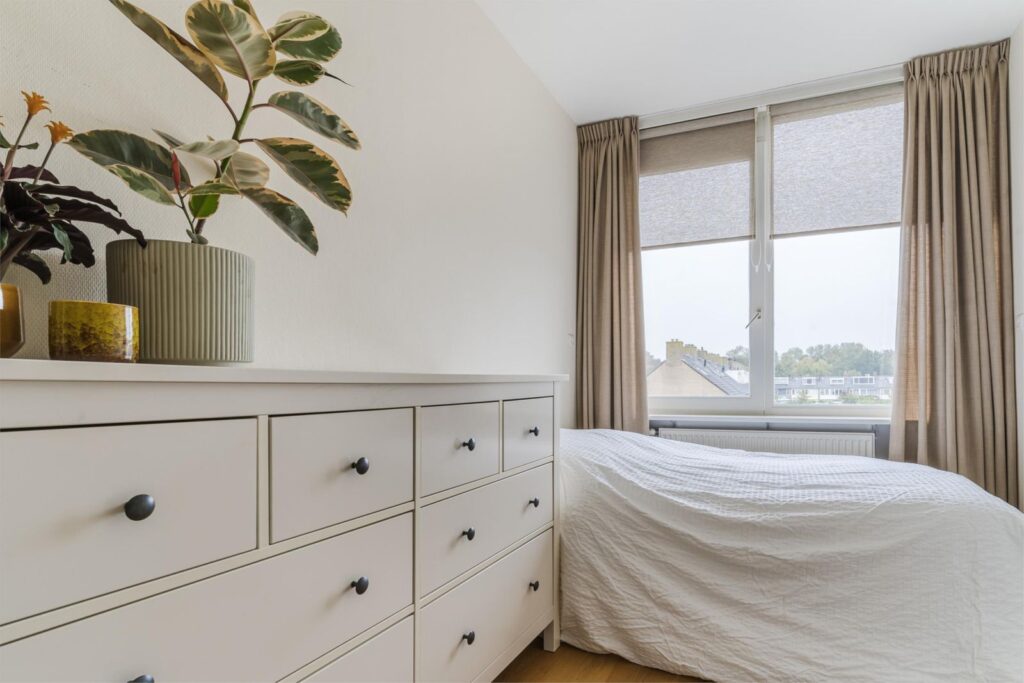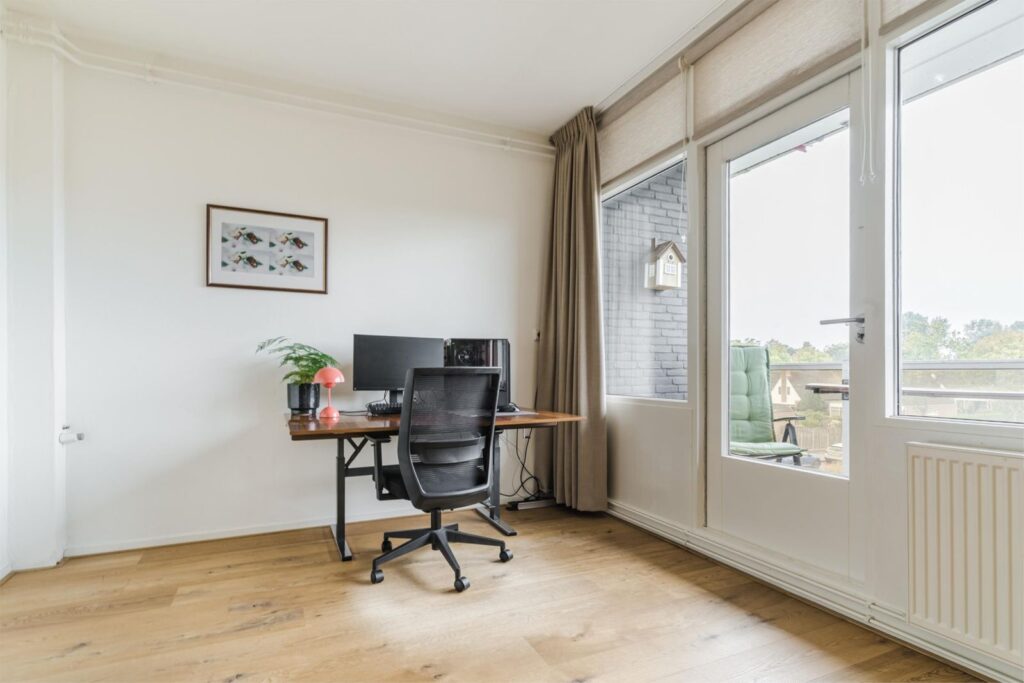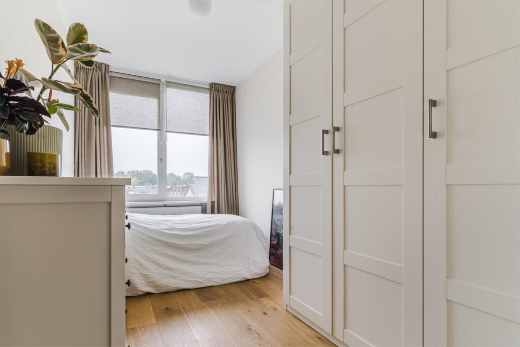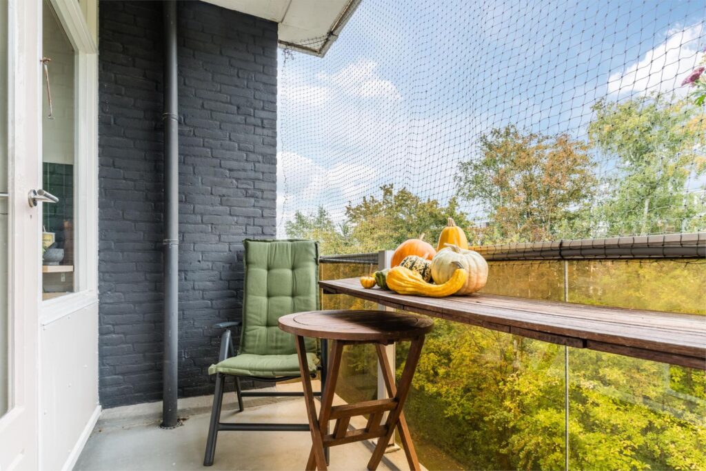 De woning is geheel voorzien van een goed onderhouden houten parketvloer, die zorgt voor een warme en stijlvolle uitstraling. Dankzij de grote ramen komt er veel natuurlijk daglicht binnen. Vanuit zowel de keuken als de slaapkamer heb je toegang tot een balkon met vrij uitzicht op groen. De balkons zijn gelegen op het zuidoosten en noordwesten, waardoor je gedurende de dag van zowel de ochtend- als de middag-/avondzon kunt genieten. Kortom: een top appartement!