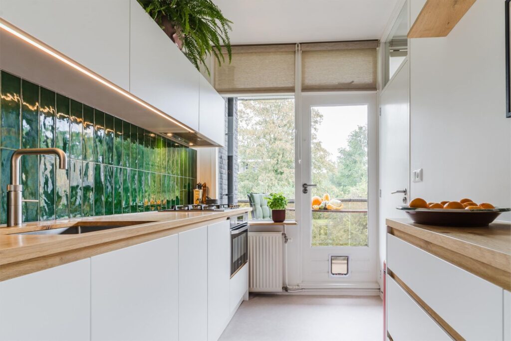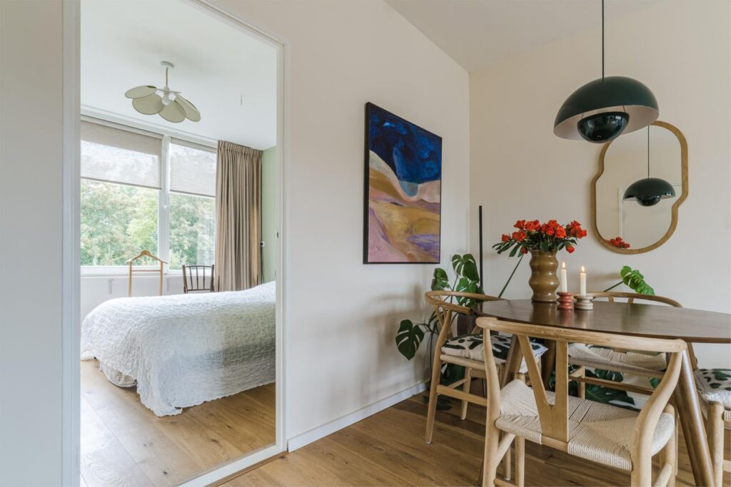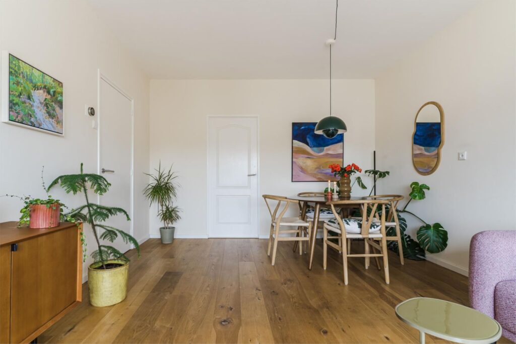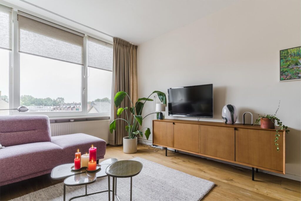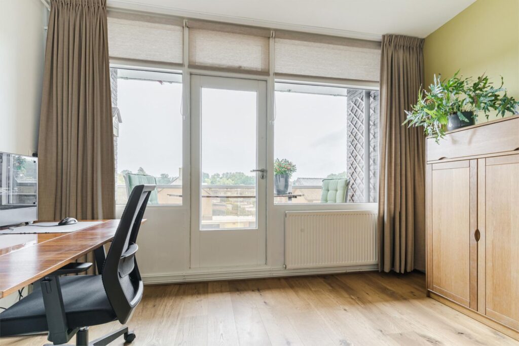 De woning is geheel voorzien van een goed onderhouden houten parketvloer, die zorgt voor een warme en stijlvolle uitstraling. Dankzij de grote ramen komt er veel natuurlijk daglicht binnen. Vanuit zowel de keuken als de slaapkamer heb je toegang tot een balkon met vrij uitzicht op groen. De balkons zijn gelegen op het zuidoosten en noordwesten, waardoor je gedurende de dag van zowel de ochtend- als de middag-/avondzon kunt genieten. Kortom: een top appartement!