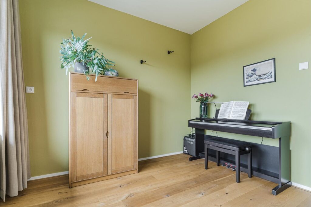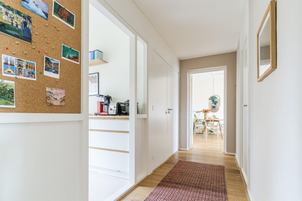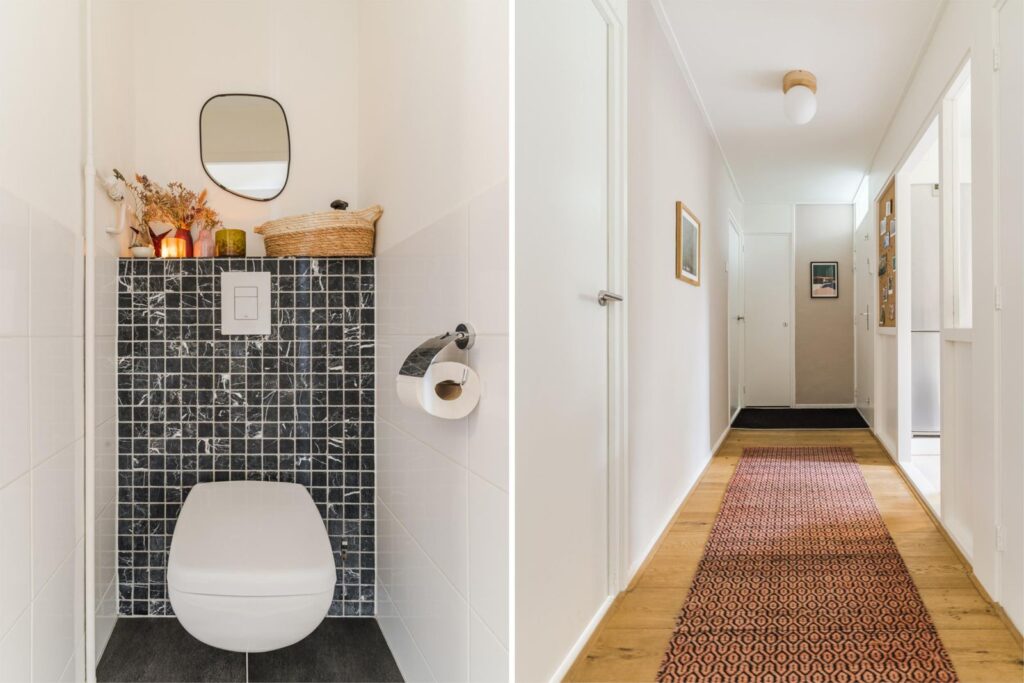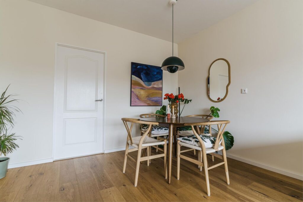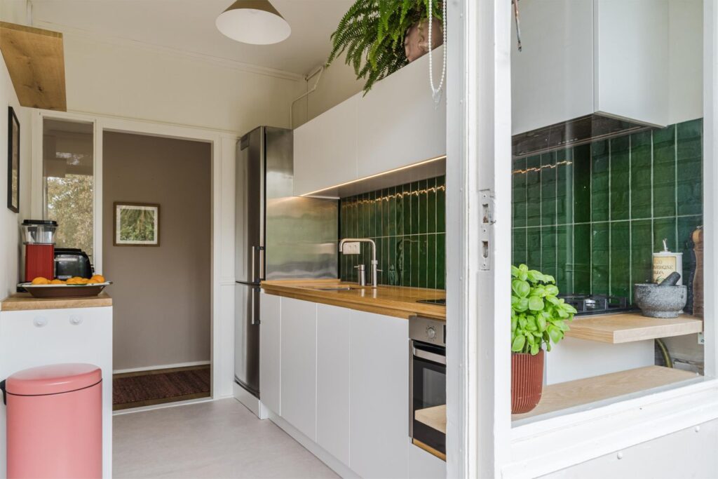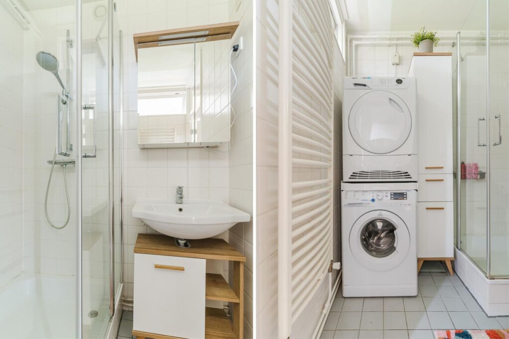 Bij binnenkomst tref je de hal met meterkast, drie slaapkamers, een lichte woonkamer en een moderne keuken. Deze keuken is in 2022 op maat gemaakt door een meubelmaker en is voorzien van inbouwapparatuur, waaronder een Quooker. De badkamer is uitgerust met een douche, wastafel en opstelmogelijkheden voor de wasmachine en droger. Verder is er een handige bergkast met de CV-opstelling en een aparte toiletruimte. De derde slaapkamer kan eenvoudig bij de woonkamer worden getrokken, wat de mogelijkheid biedt om een extra ruime woonkamer te creëren.
