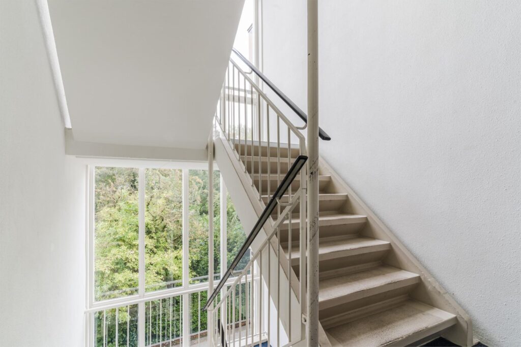 De afgesloten centrale entree biedt toegang tot de brievenbussen, de trapopgang en de berging.