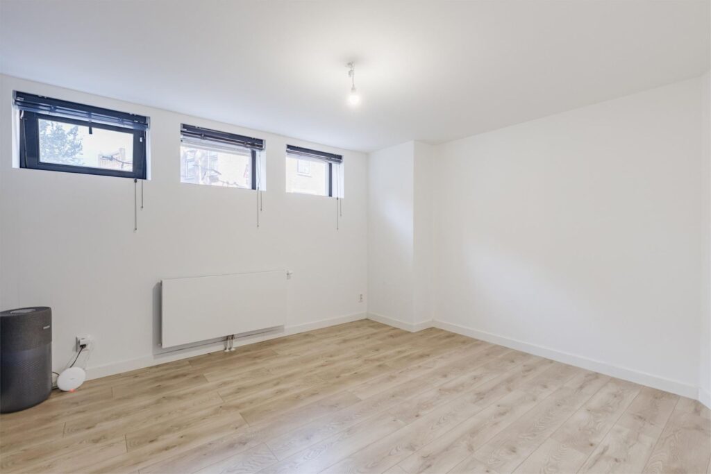 Beneden, in het souterrain, wachten twee fijne slaapkamers op je. Omdat deze verdieping deels onder het pand ligt, blijft het in de zomer heerlijk koel. Ideaal voor een goede nachtrust tijdens zwoele zomernachten! De slaapkamers bieden voldoende ruimte voor een comfortabel bed, kledingkasten en misschien een speelhoek of bureau. De tweede slaapkamer kan nu dienen als logeerkamer of thuiskantoor, en later moeiteloos worden omgetoverd tot een knusse kinderkamer. Verder vind je op deze verdieping ook een moderne badkamer en een praktische wasruimte.