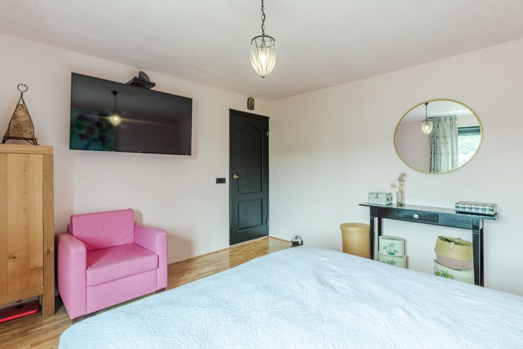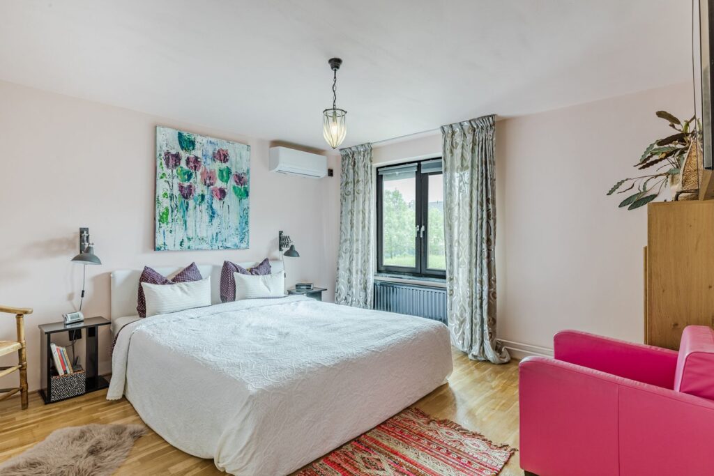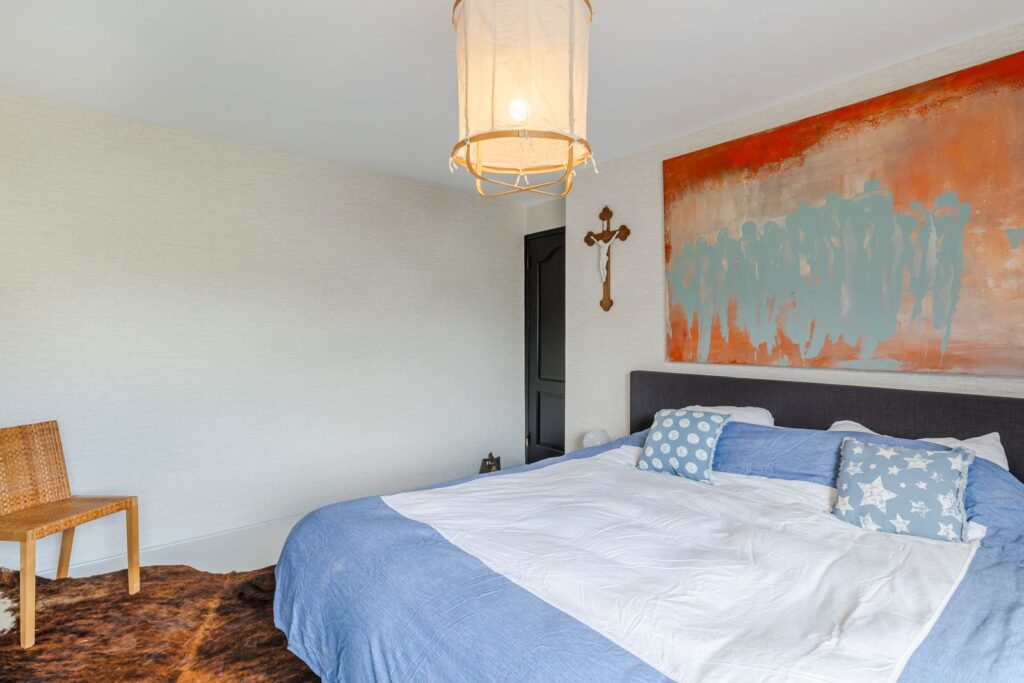 Drie slaapkamers (4,20x4,00 / 4,20x3,60 / 3,20x2,80) met houten vloer, waarvan één kamer is ingericht als inloopkast. De slaapkamer aan de voorzijde van het huis is opnieuw gestukt en heeft een nieuwe airco, die ‘s winters naast de cv de ruimte ook kan verwarmen. De gemoderniseerde ruime badkamer 8m2 heeft een groot bad, nieuwe douchecabine en wastafelmeubel alsmede een Japans toilet.