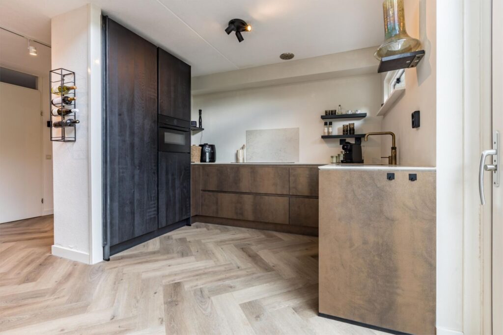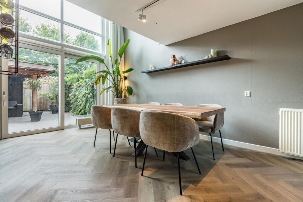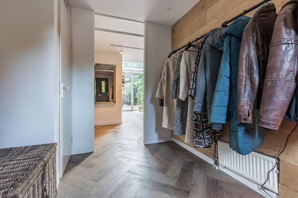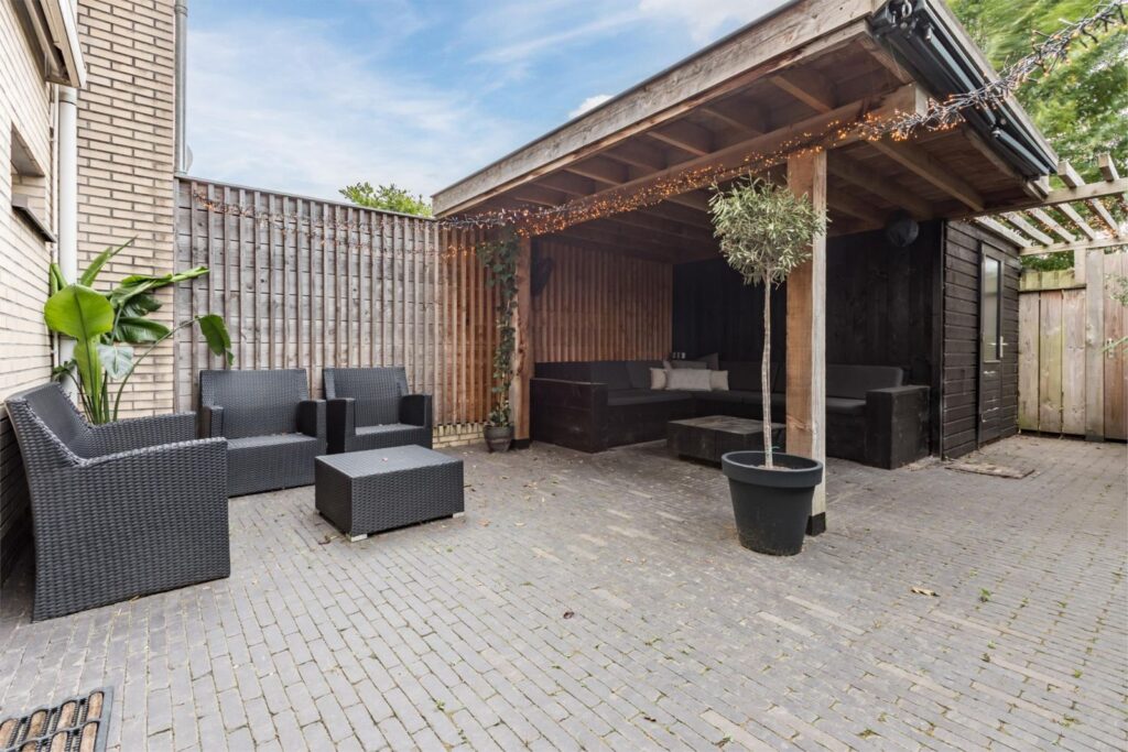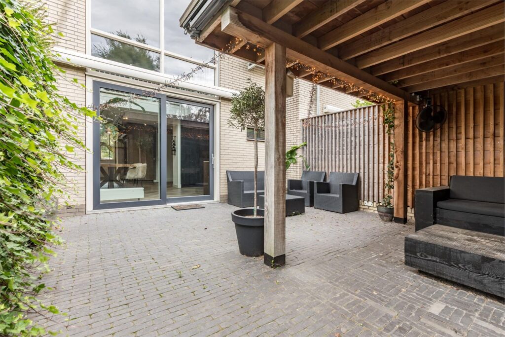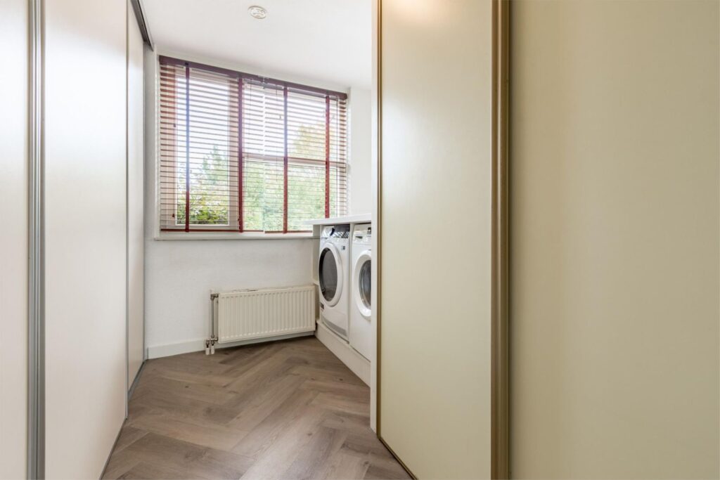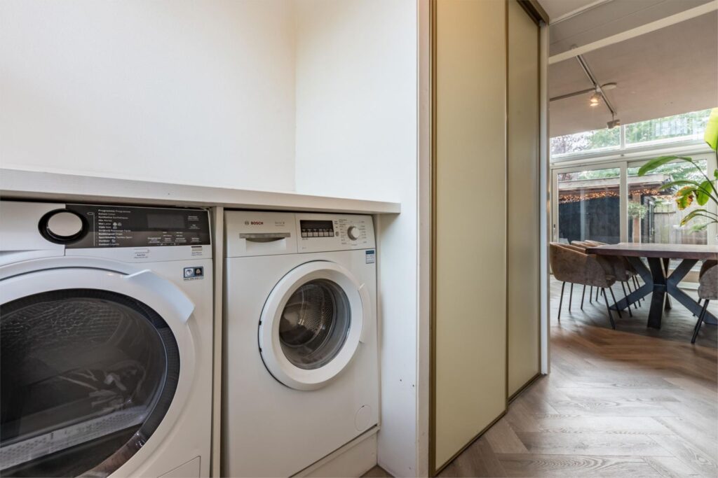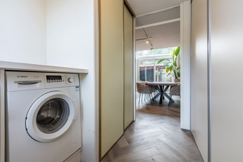 Via de schuifpui stap je zo de verzorgde achtertuin op het zuidwesten in. De bijkeuken biedt extra bergruimte en plaats voor de wasmachine en droger.