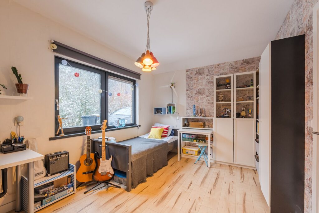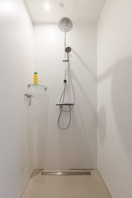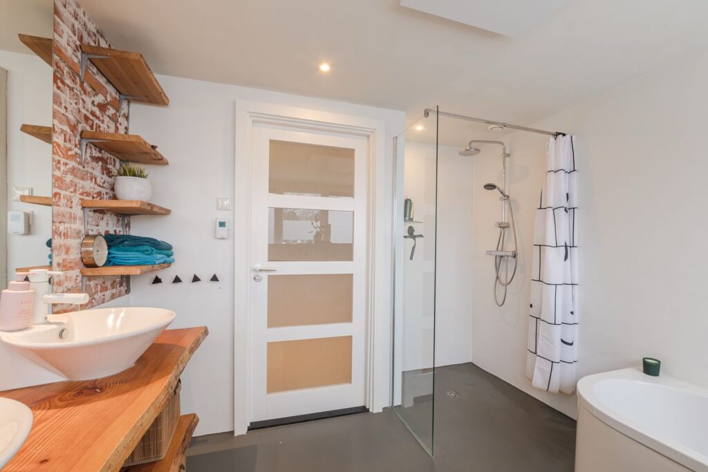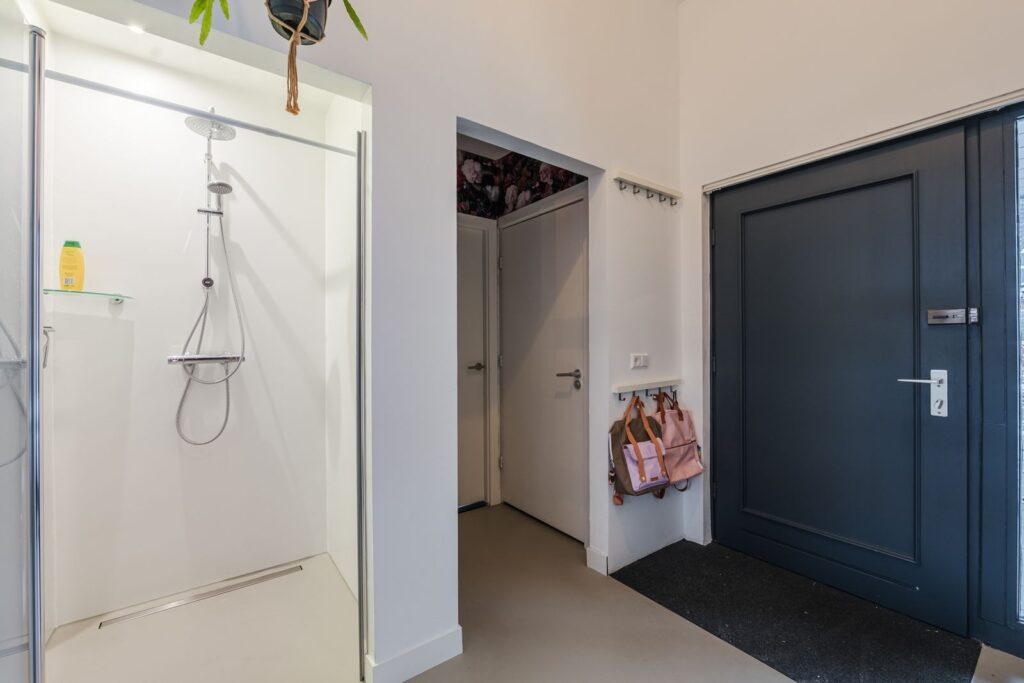 Terug in de hal vindt u een regendouche, apart hangtoilet en een slaapkamer met wastafel (12m2). Deze ruimtes samen zorgen voor de optie van levensloopbestendig wonen.