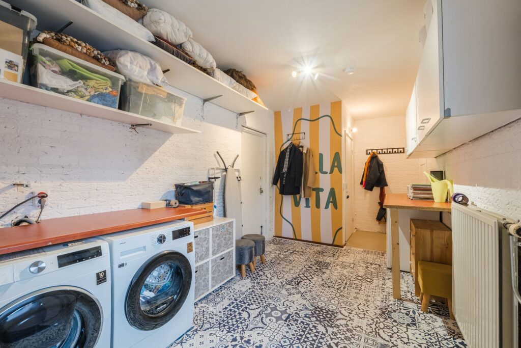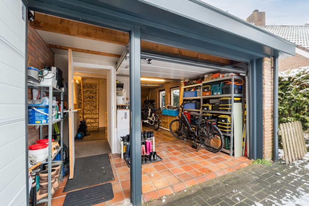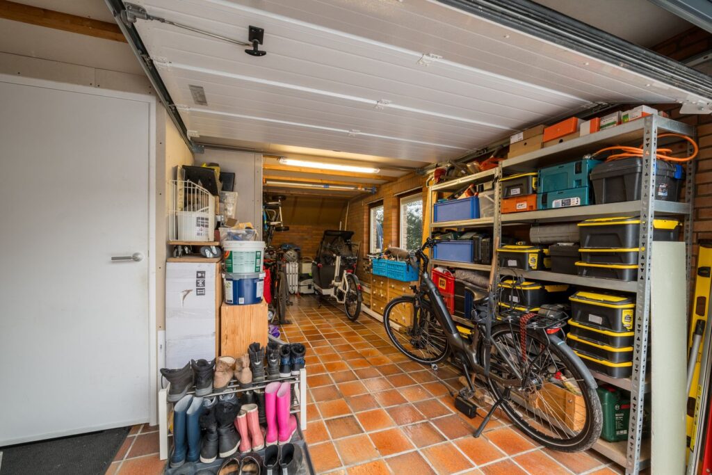 Op de begane grond is er grenzend aan de keuken een bijkeuken van 16m2, deze heeft een dubbele aansluiting voor wasmachines. Ook vindt u hier een afgesloten ruimte met CV-ketel en voorraadkast, een deur naar de tuin en een extra wasbak. Via een hal grenzend aan de bijkeuken loopt u naar een extra kamer die op dit moment als werkkamer gebruikt wordt. Ook bereikt u via deze hal de geïsoleerde garage (18m2). Met een vaste trap is de ruimte (9m2) boven de garage te bereiken, hier is een slaapkamer en extra bergruimte te vinden.
