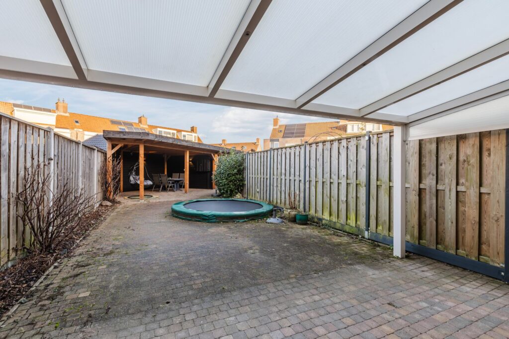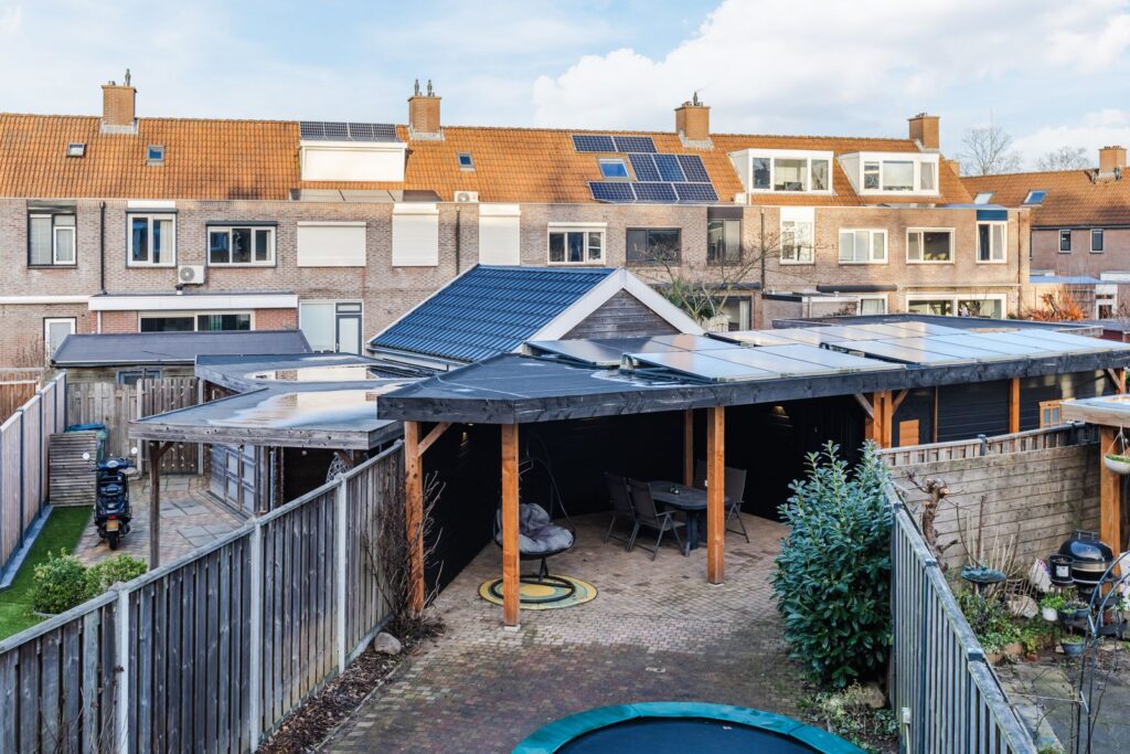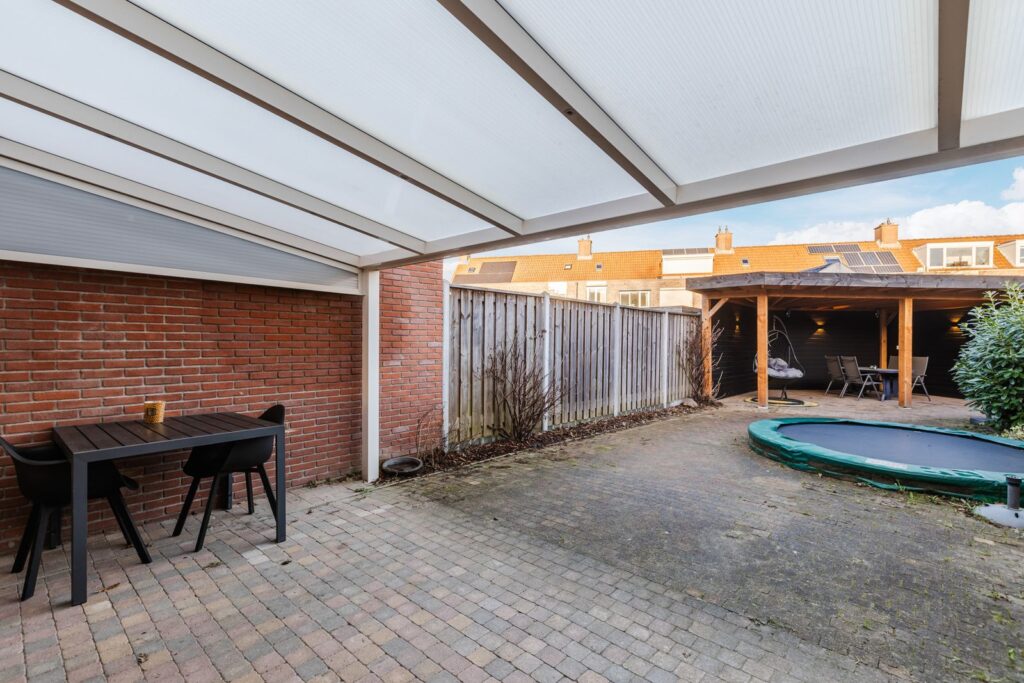 De 16 zonnepanelen uit 2023 (5376 Wp) bevinden zich op de overkapping en zijn gericht op het zonnige zuiden. Het ruime terras is ideaal voor een bbq op een zonnige avond en de trampoline maakt de tuin compleet als heerlijke plek om te vertoeven in alle seizoenen. Uiteraard is er een afsluitbare achterom aanwezig in de tuin.