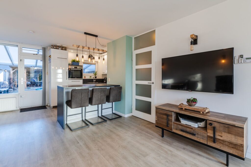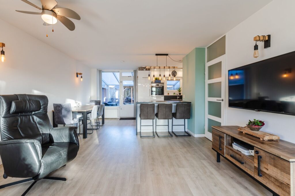 Deze nette tussenwoning heeft een lichte woonkamer, moderne witte keuken, 3 slaapkamers en een heerlijke tuin tot ruim 26 mtr diep met privacy. Vrij uitzicht aan de voorzijde, kunststof kozijnen, 2 airco’s en elektrische screens en rolluiken aan de voorzijde maken het geheel compleet. Ideaal voor gezinnen of starters die net wat meer ruimte zoeken en graag wonen in een groene en kindvriendelijke omgeving met speelveld voor de deur. De woning biedt een fijne combinatie van comfort, ruimte en rust. U loopt hier zo naar het Rond met winkels, bus- en NS station, restaurants, bioscoop of theater en staat binnen enkele minuten in speelbos Nieuw Wulven voor een mooie fiets- of wandeltocht.