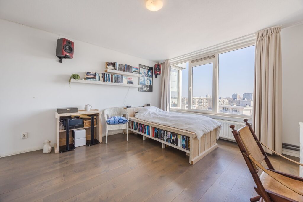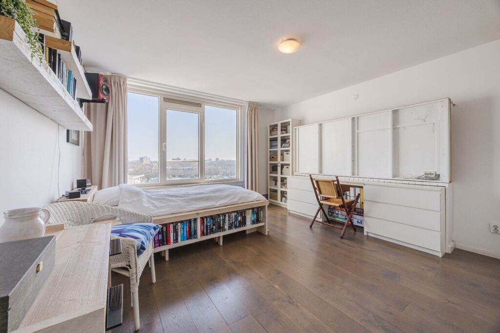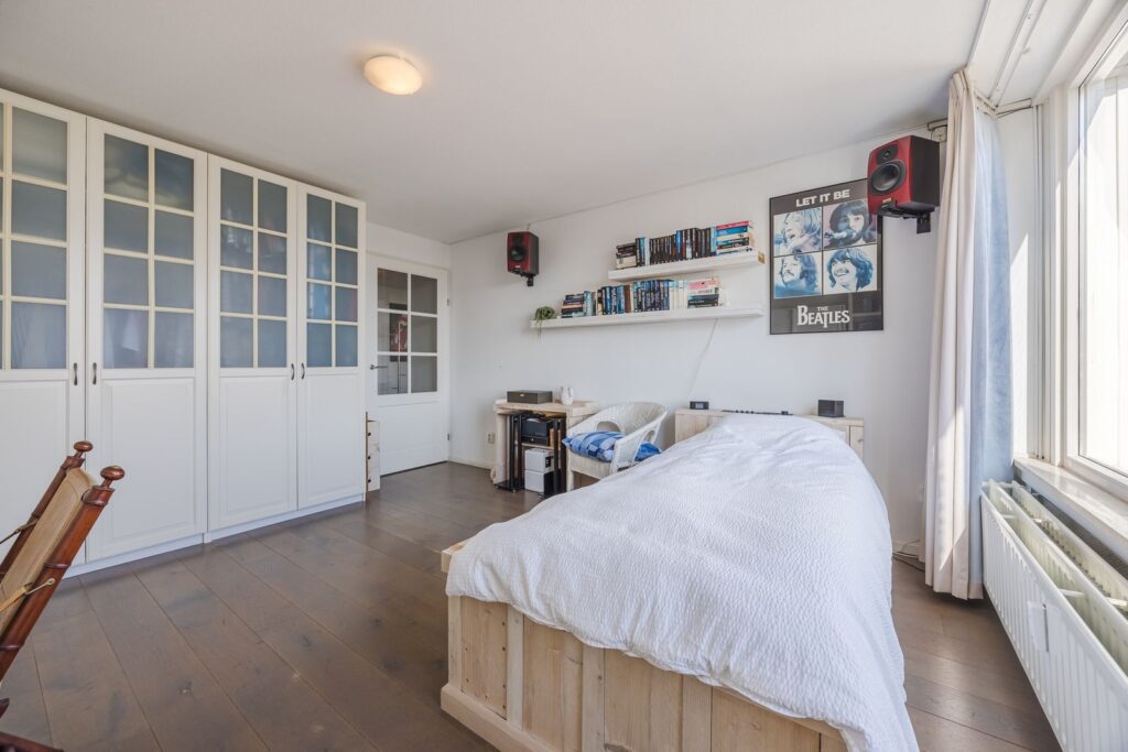De slaapkamer is ruim en licht.