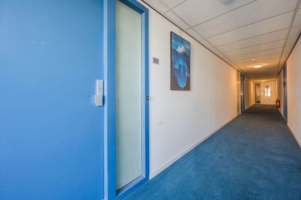 Bij de entree in het appartement kom je binnen in de hal, welke toegang geeft tot de woonkamer, slaapkamer, badkamer en toilet.