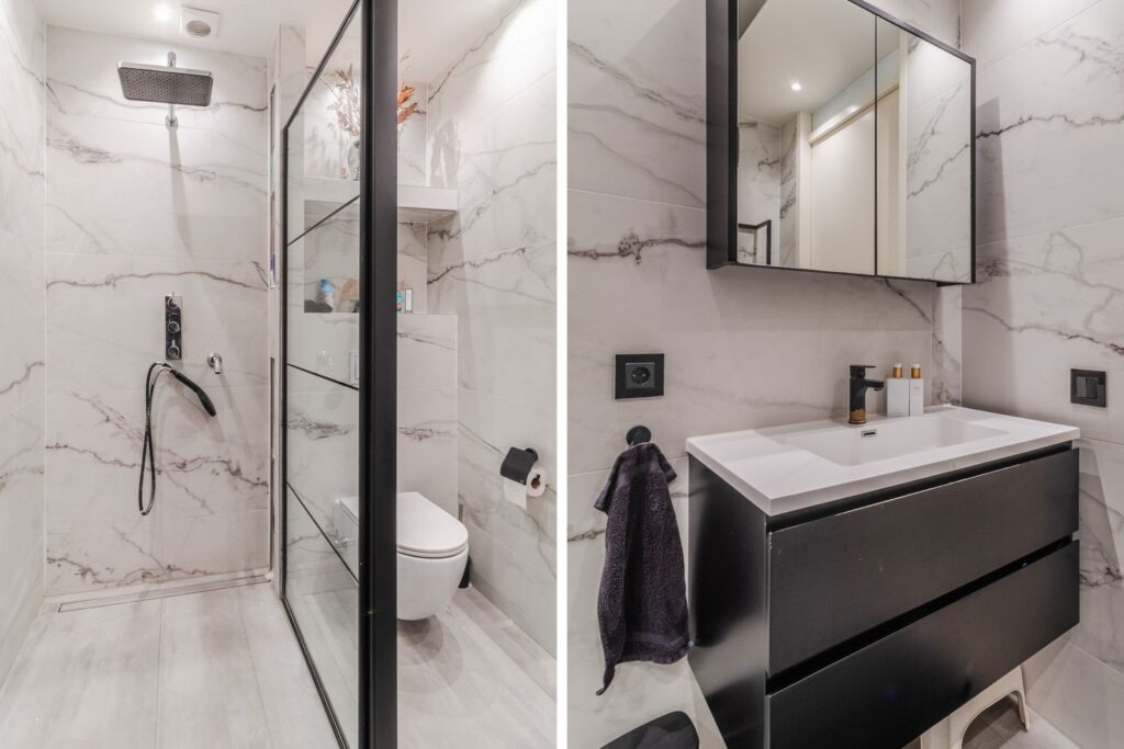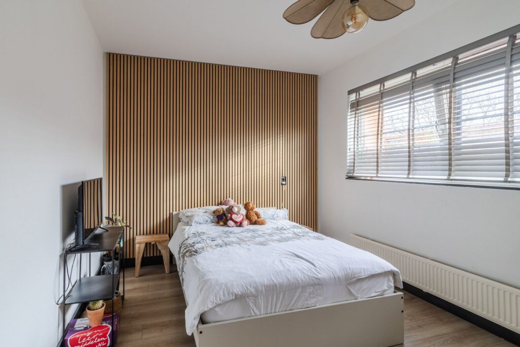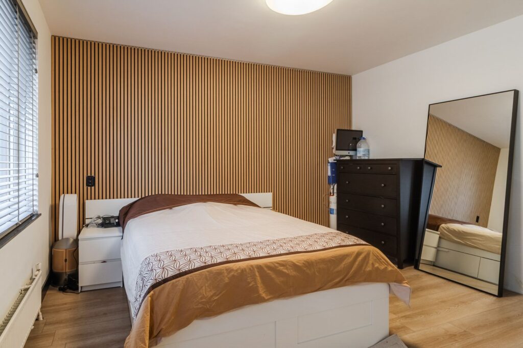 Grote slaapkamer aan achterzijde (ca. 4.43 x 4.80), moderne badkamer (2021) (ca. 2.50 x 1.85) met douchecabine, toilet en wastafelmeubel, ruime slaapkamer aan voorzijde (ca. 4.80 x 3.10).