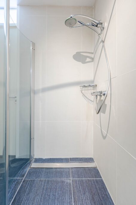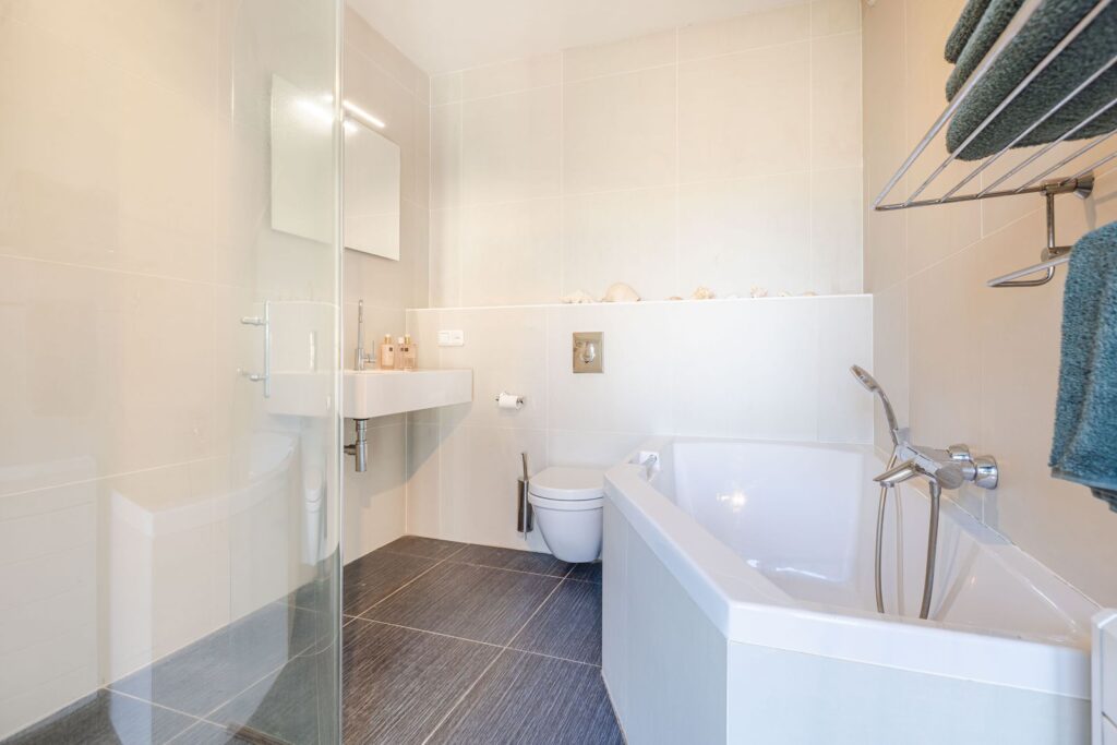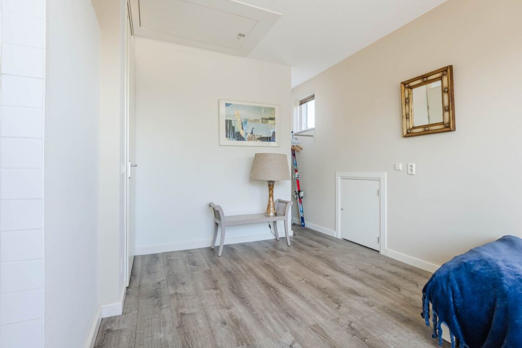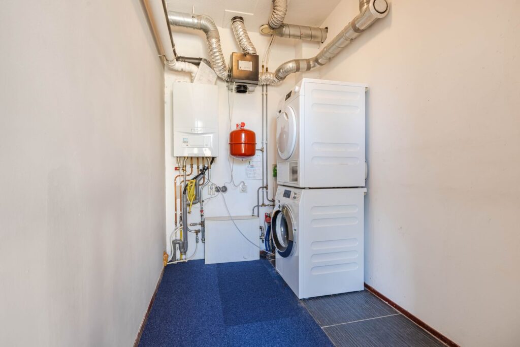 Op deze verdieping bevindt zich de master bedroom met nabijgelegen een luxe badkamer. Deze badkamer is hoogwaardig afgewerkt met een ligbad, een moderne inloop-regendouche, een stijlvol wasmeubel en een toilet. Ook de praktische zaken zijn hier geregeld: er is een aparte was- en technische ruimte voor de wasmachine, droger, de HR-ketel uit 2021 en de mechanische ventilatie.
