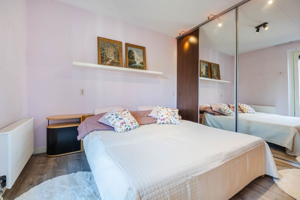 Op de eerste verdieping bevindt zich een verrassende derde slaapkamer. Deze kamer is uitgevoerd als een suite met een eigen douche en toilet, ideaal voor gasten of een inwonend kind dat privacy zoekt. Daarnaast biedt de verdieping zeer veel bergruimte dankzij twee aparte zolders: één bereikbaar via een vlizotrap en de tweede via een kruipluik.