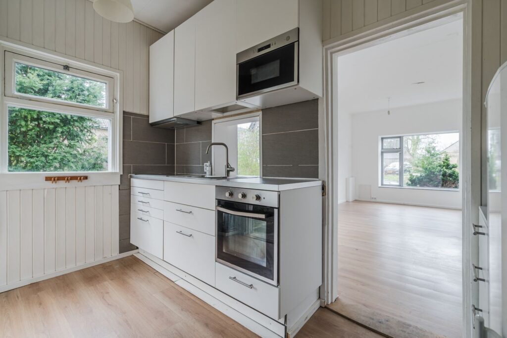 Begane grond: Via de achterentree bereikt u de keuken. De keuken (2019) is uitgerust met een inductiekookplaat, afzuigkap, oven en magnetron. De woonkamer is heerlijk licht en heeft een plafondhoogte van circa 3 meter, wat zorgt voor een extra ruimtelijk gevoel. Daarnaast bevindt zich op de begane grond een toilet met fonteintje. De gehele begane grond is voorzien van comfortabele vloerverwarming.