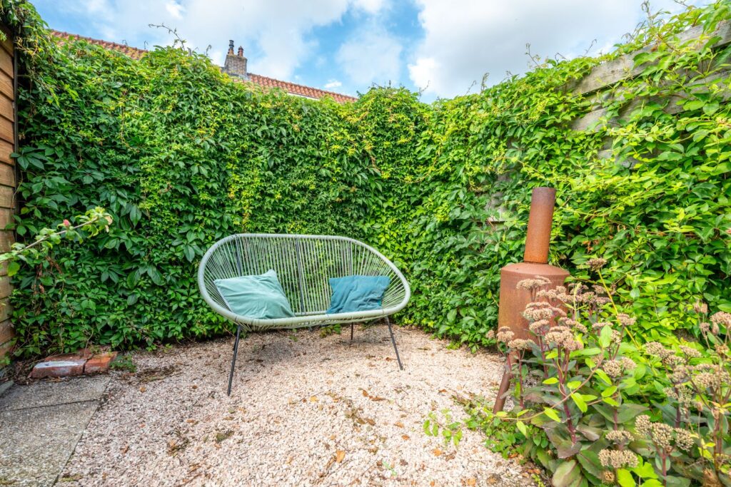 De tuin is een heerlijke plek om te ontspannen: zonnig, groen en opvallend ruim. Dankzij de ruime voor- én achtertuin heb je altijd een fijne plek om van het zonnetje te genieten, met volop privacy. Een fijne plek waar je lekker tot rust kunt komen na een drukke dag!