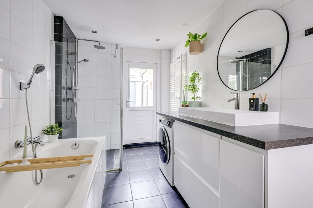 V Stijlvolle badkamer met ligbad én douche