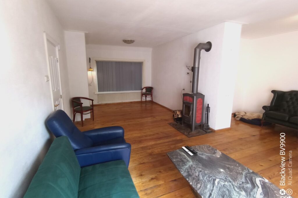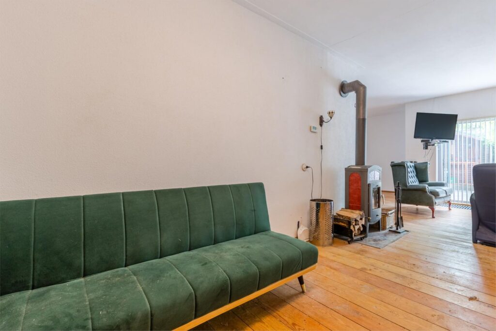 De benedenverdieping is verrassend ruim met een woonoppervlak van 67 m², mede dankzij de brede voorgevel en de gedeeltelijke uitbouwen aan de achterzijde. De woonkamer van 40 m² is het hart van het huis, waar u kunt genieten van de warmte van de houtkachel. Dankzij deze kachel is het energieverbruik al jarenlang bijzonder laag. Besloten ruime en groene tuin: