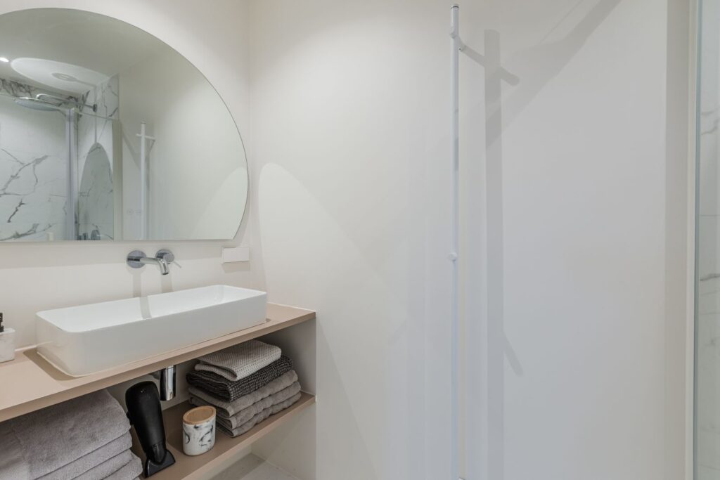 De nieuwe badkamer met regendouche biedt een luxe hotelbeleving. De woning is uitgerust met een energiezuinige boiler die specifiek is afgestemd op het gebruik van de regendouche, waardoor het warmwatercomfort ook bij langere douches optimaal blijft.
