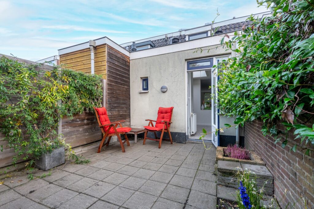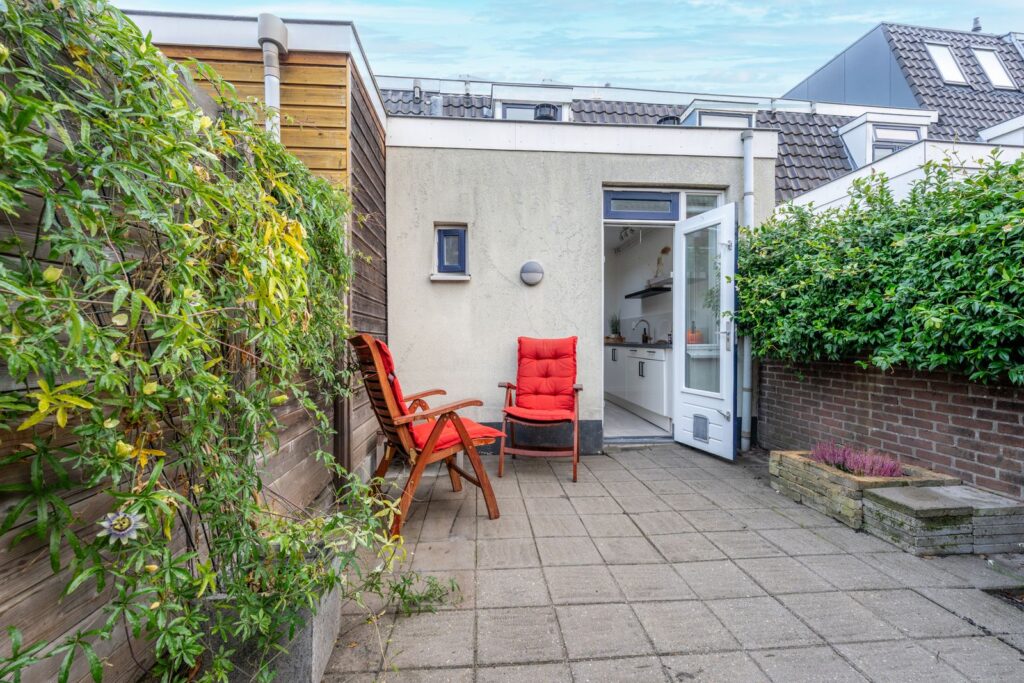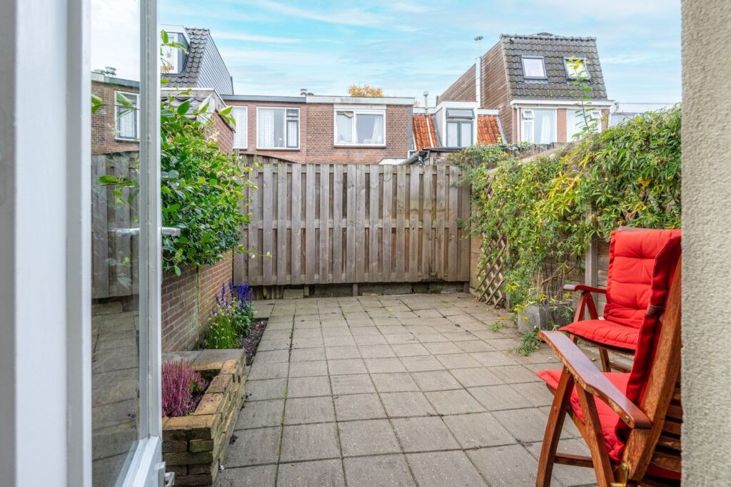 De onderhoudsvriendelijke tuin ligt op het zuiden en biedt dankzij de open ligging lekker veel zon. Er is voldoende ruimte om heerlijk buiten te zitten en een gezellige zithoek te creëren. Een ideale stadstuin zonder al te veel werk!