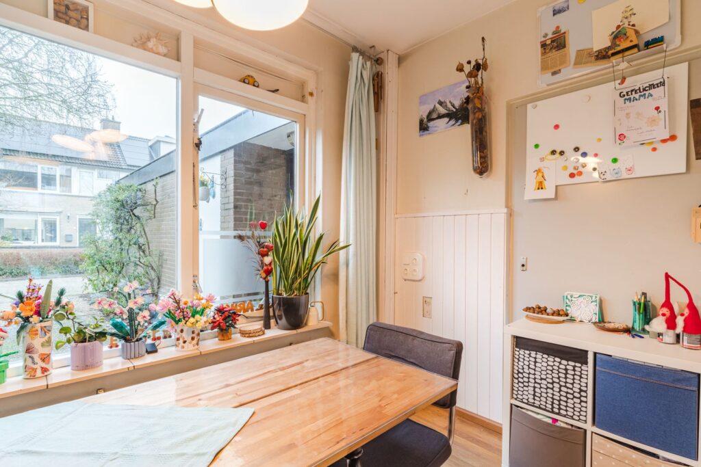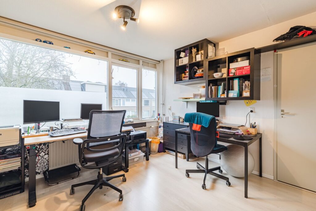 De woning is vanwege de ruimte zeer geschikt voor een gezin met kinderen, maar ook met ruimte voor kantoor, atelier of praktijk aan huis. De woning ligt in een rustige wijk, aan de ingang van een doodlopende weg. Er is een leuke speeltuin vlakbij en zelfs een pluktuin, die beheerd wordt door de buurtvereniging. Verder zijn allerlei voorzieningen direct in de buurt.