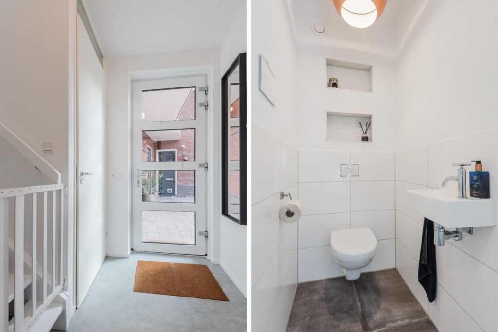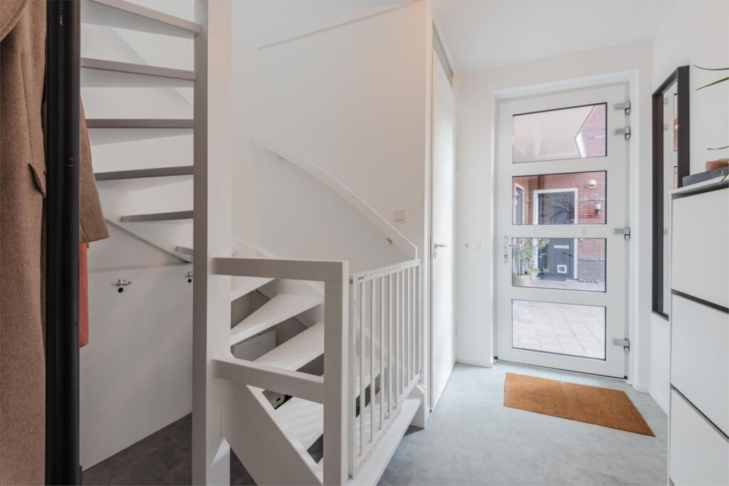 De woning is gelegen aan een rustige straat. Je auto parkeer je op je eigen oprit en een 2e auto parkeren op eigen terrein is mogelijk. Je komt de woning binnen via de hoofdentree (of bijkeuken, maar daarover later meer). Beneden ligt een PVC-vloer; de gehele begane grond heeft vloerverwarming (m.u.v. de berging). Vanuit de hal heb je toegang tot het vrijhangend toilet met fonteintje en stap je de woonkamer in U-vorm binnen. De woning is netjes afgewerkt en onderhouden en is voorzien van kunststof kozijnen met driedubbel glas.