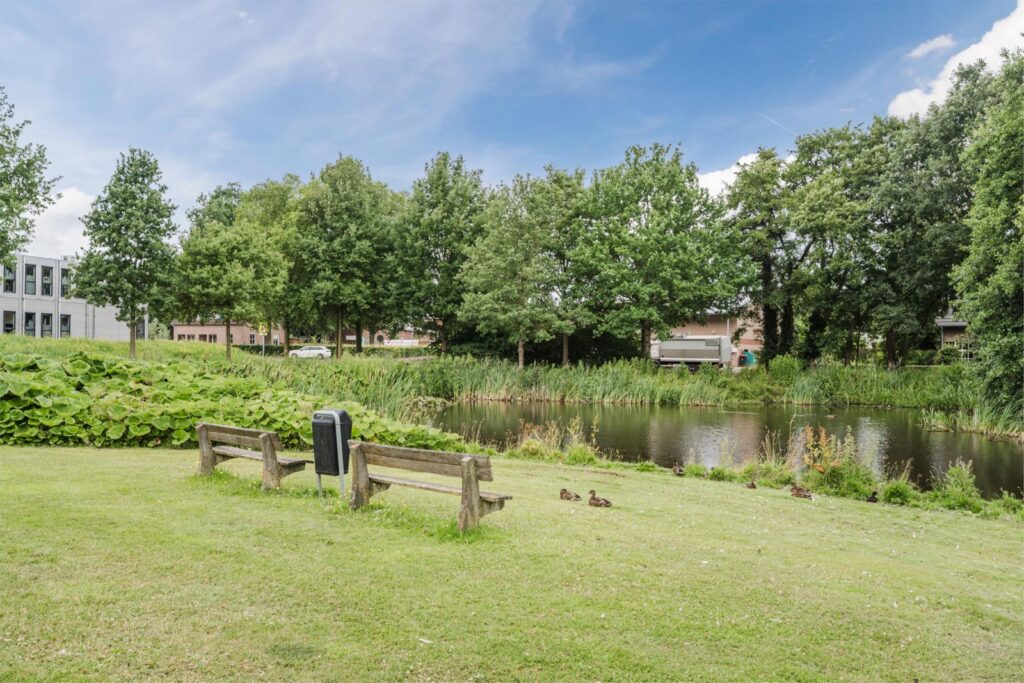 De directe omgeving biedt een mooi, groen park en eendenvijver met bankjes om te lunchen of picknicken.