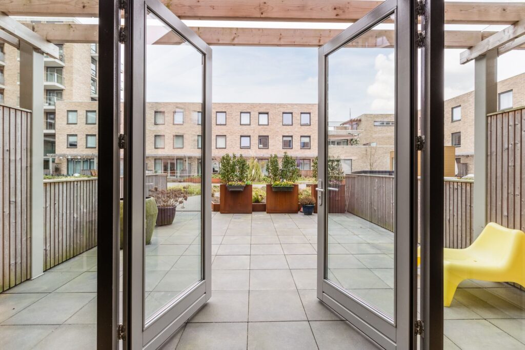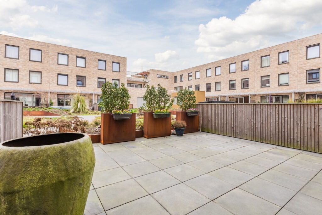 - Zonnig terras voorzijde en achtertuin met toegang tot gemeenschappelijke binnentuin