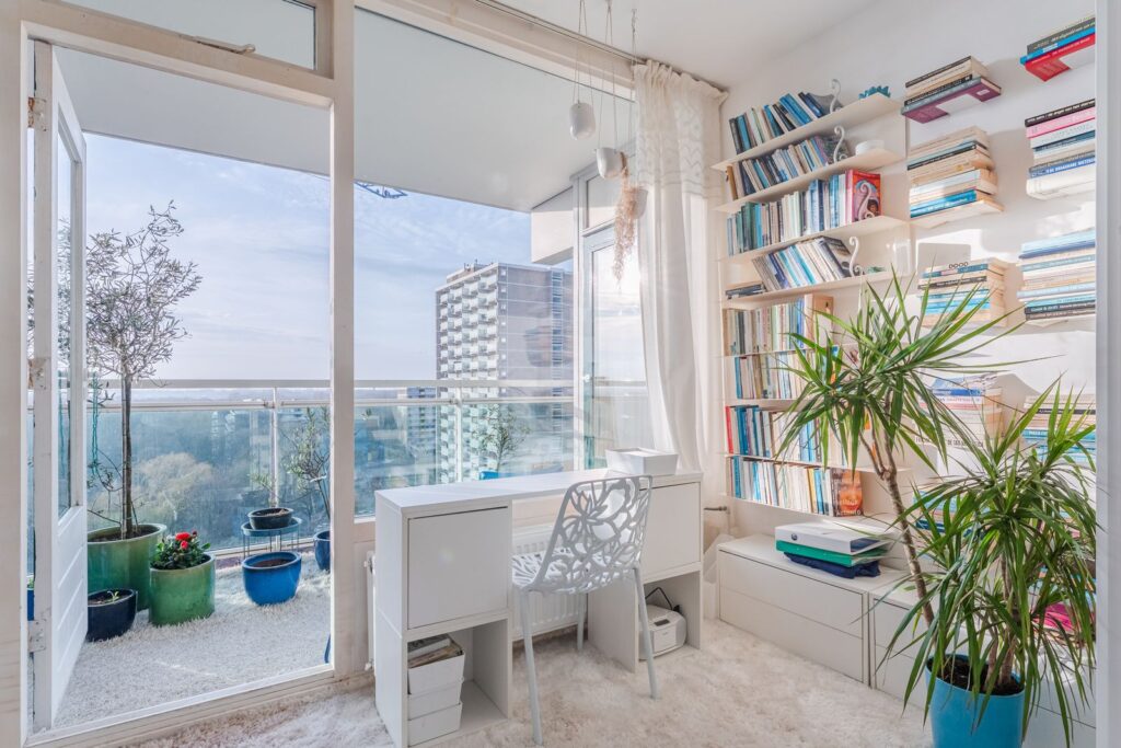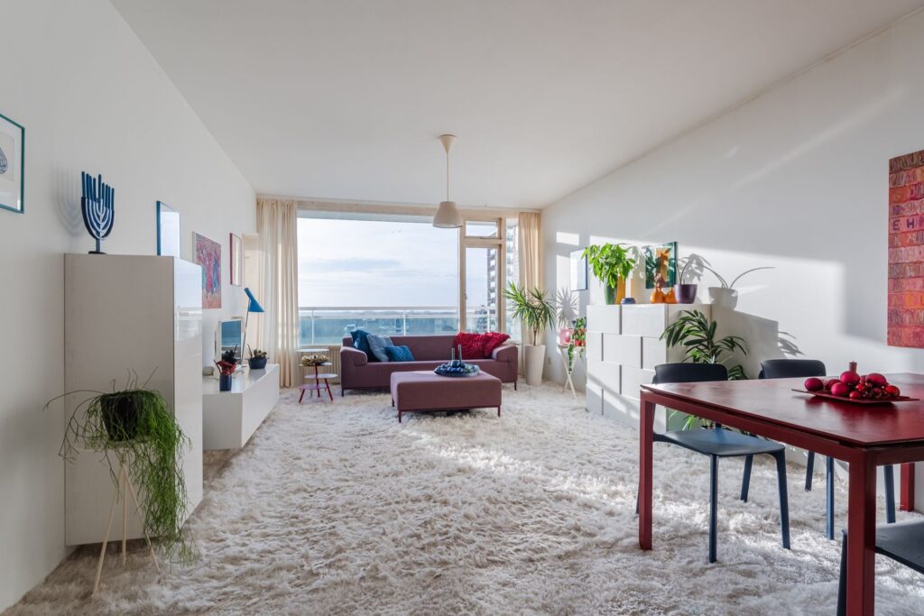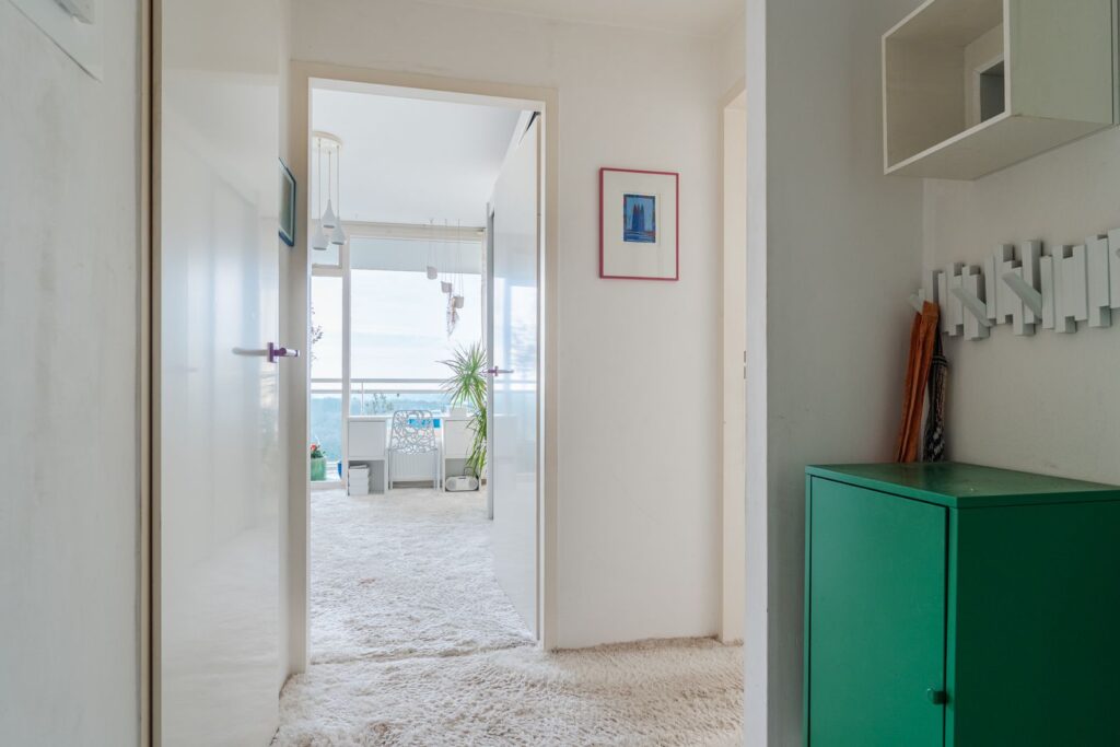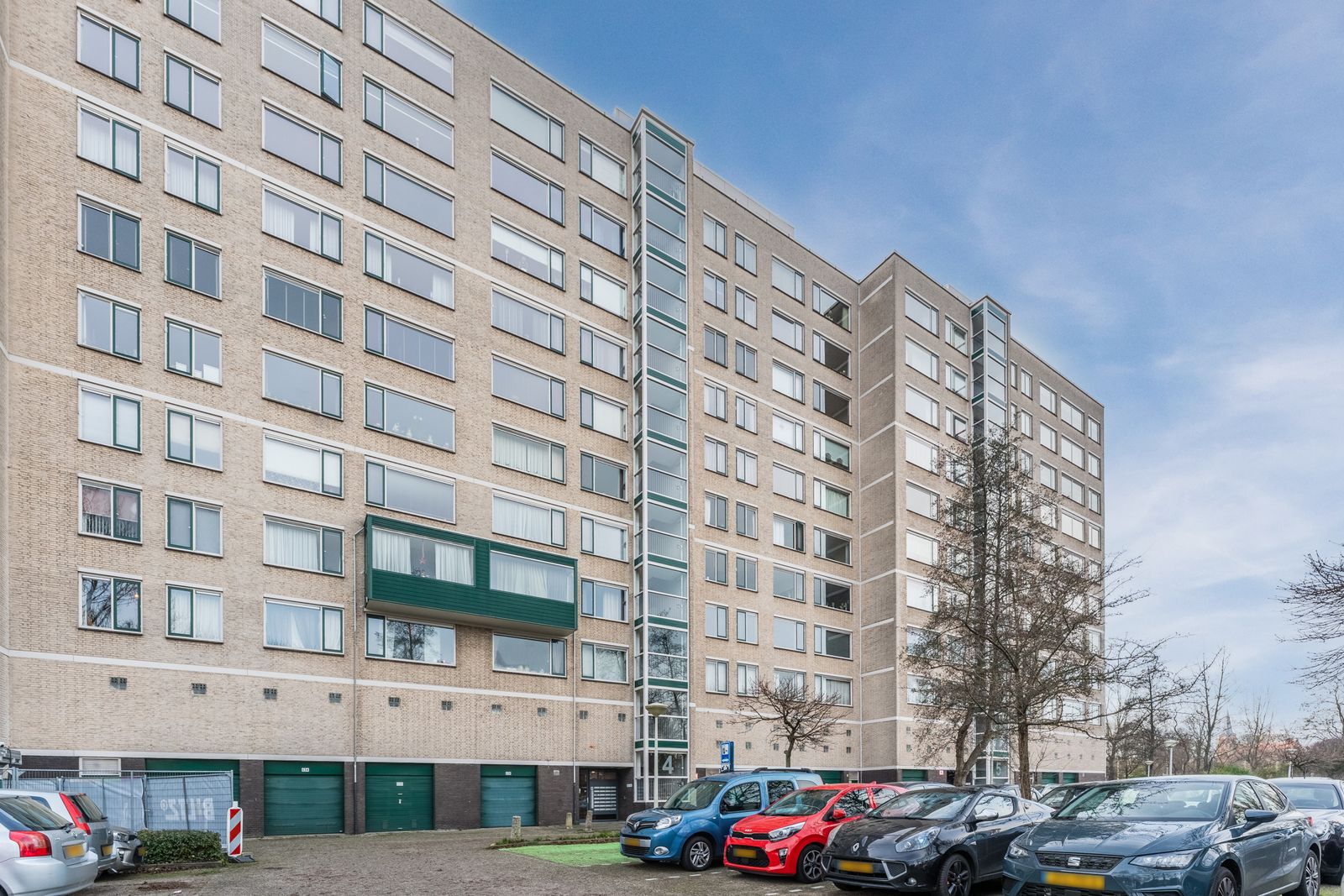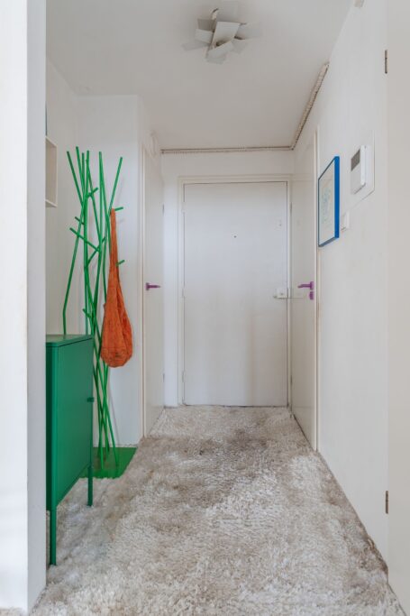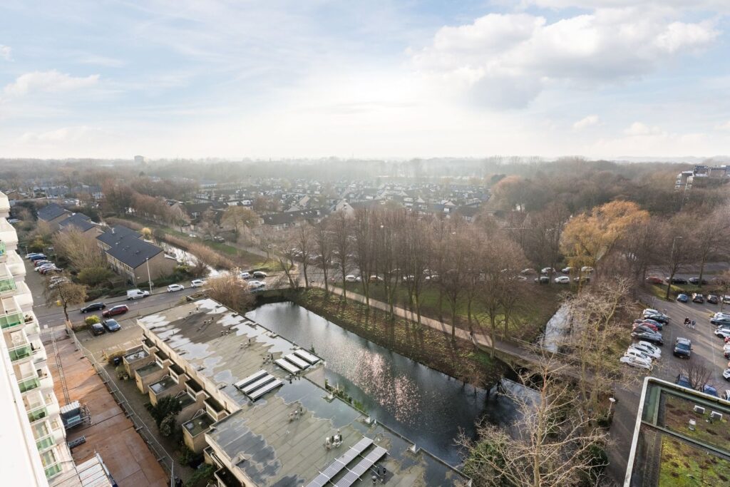 De woning bevindt zich op de elfde verdieping, waar maar een appartement is en er dus geen buren zijn. Door de ligging aan het groen zijn er ook geen overburen waardoor er nergens inkijk is.