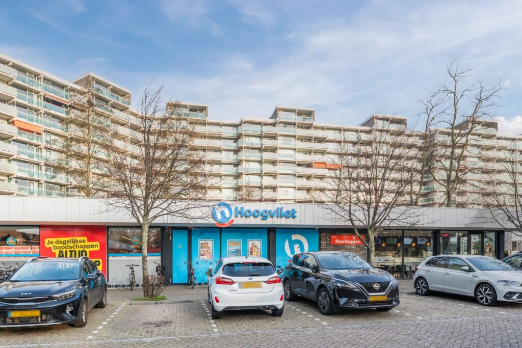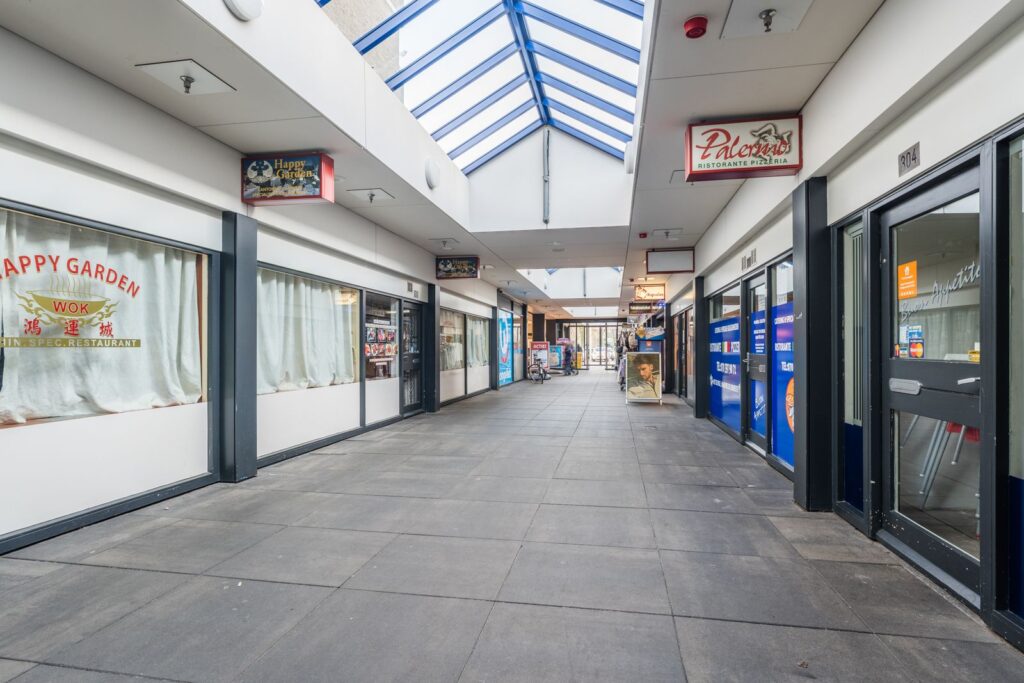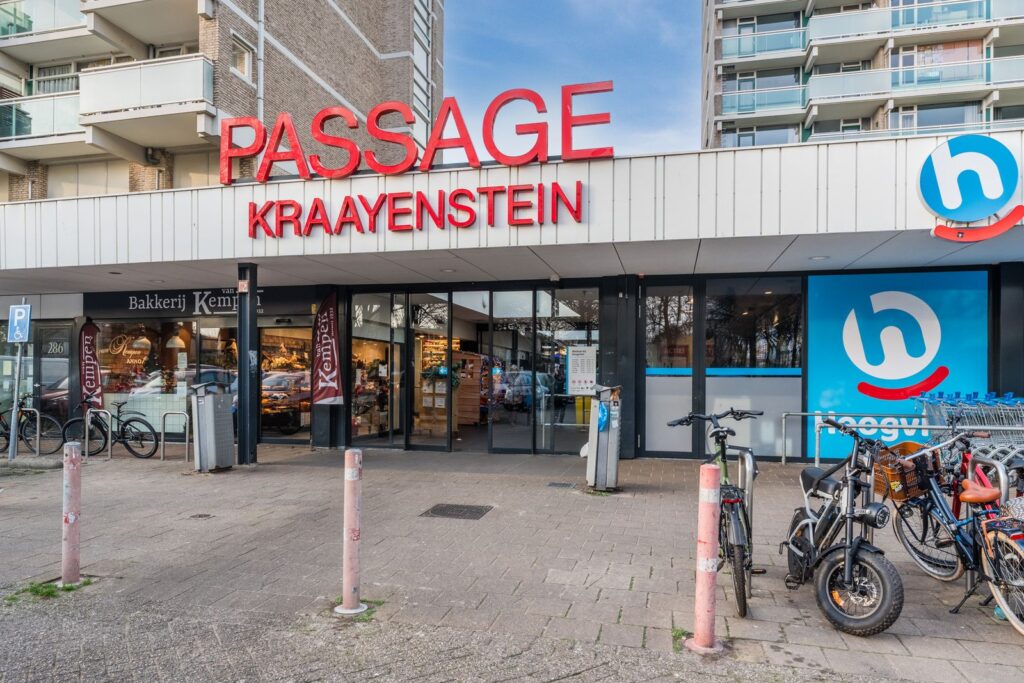 Klein winkelcentrum met een goede supermarkt om de hoek.