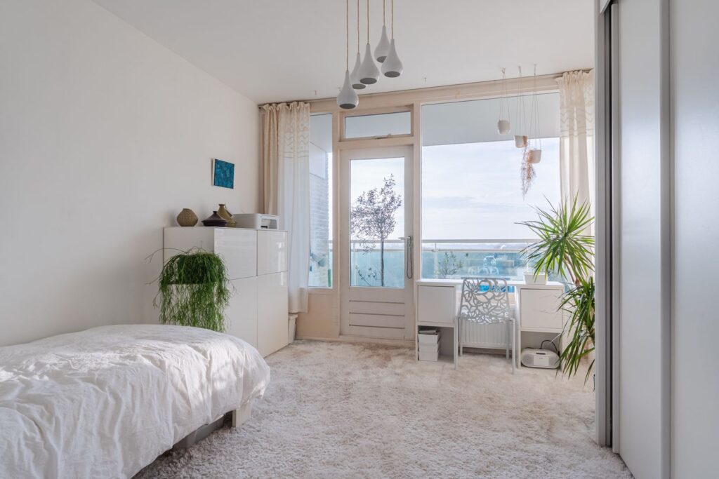 De slaapkamer heeft een deur naar het gezellige balkon op het zuiden.