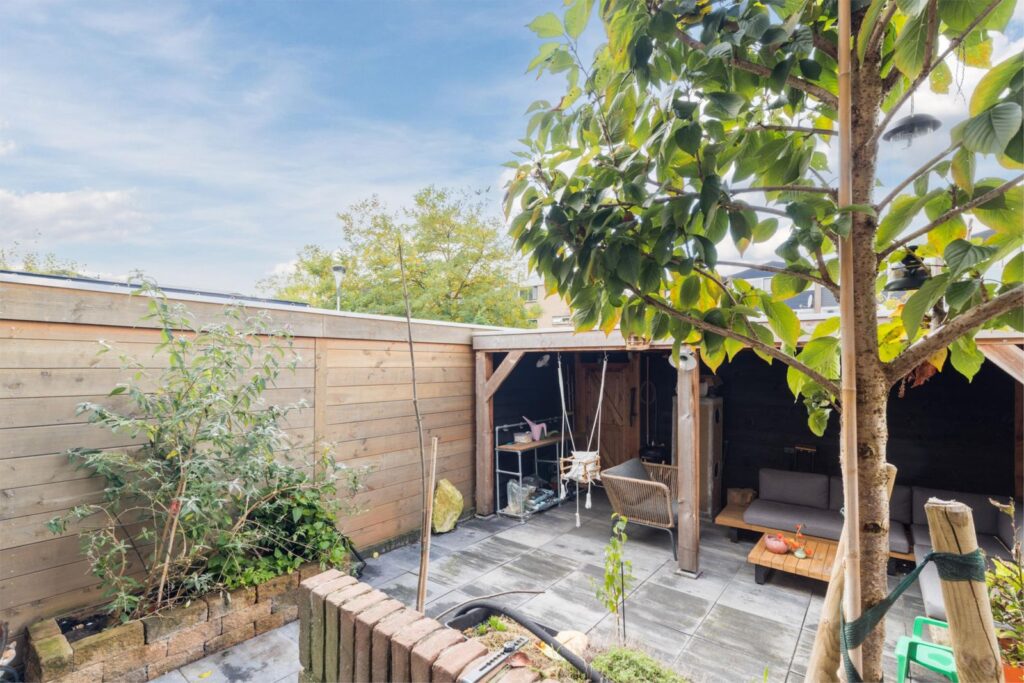De tuin (2022 vernieuwd) is onderhoudsvriendelijk en praktisch ingedeeld, met verhoogde plantenbakken en een riante overkapping met verlichting. Hier geniet je van lange avonden in alle rust. Direct achter de tuin ligt een in 2023 vernieuwde speeltuin: een waar paradijs voor kinderen met ruim grasveld. Aan de voorzijde van de woning is parkeergelegenheid op eigen parkeerplekken direct voor de garage en een balkon op het oosten – de perfecte plek voor een zonnig ontbijt.