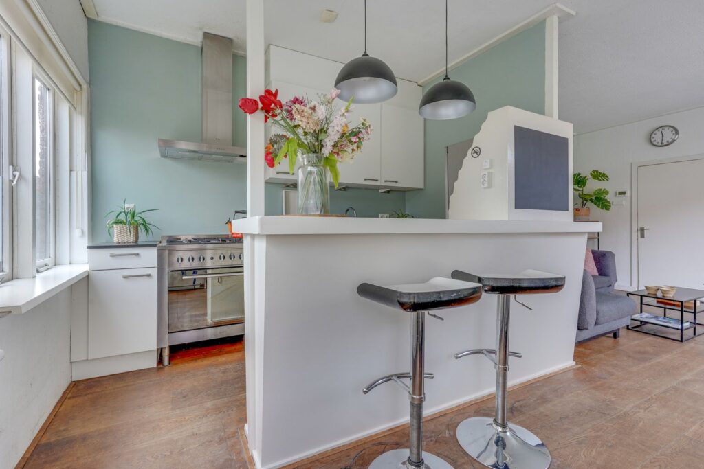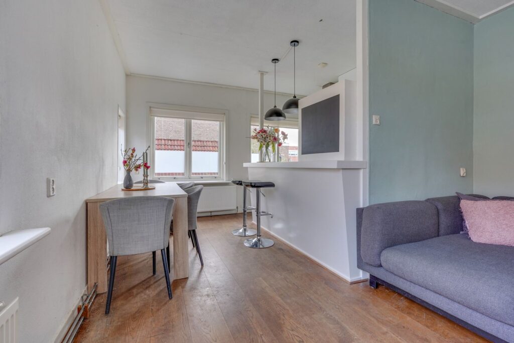 Je komt binnen op de overloop met toegang tot het toilet, de woonkamer en de eerste slaapkamer. De woonkamer is licht, ruim en sfeervol en loopt door in de eetkamer aan de achterzijde. De open keuken met bar heeft veel werkruimte en is uitgerust met een gasfornuis, afzuigkap, koel-vriescombinatie, vaatwasser en keukenblok. Ideaal voor wie van koken én gezelligheid houdt. Aan de voorzijde bevindt zich een ruime slaapkamer met twee handige inbouwkasten.