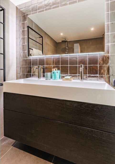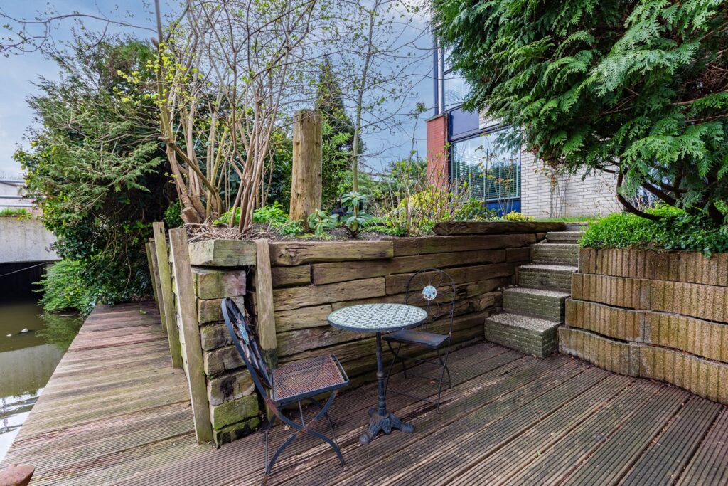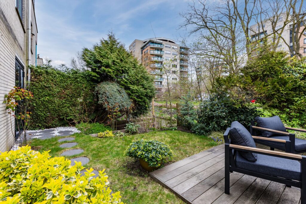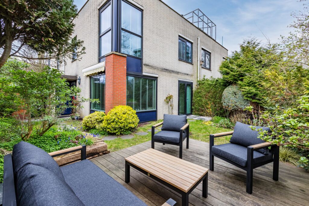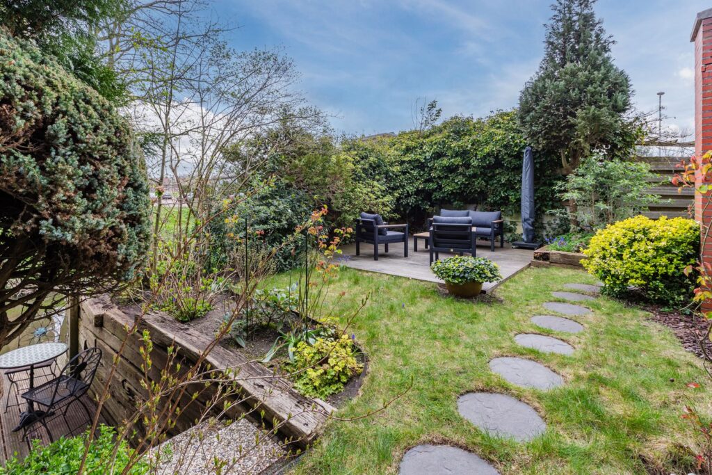 Via de verplaatste voordeur kom je binnen in een sfeervol halletje met handige kastruimte en een modern toilet. Naast de entree ligt een praktische buitenberging. De lichte woonkamer heeft een open keuken voorzien van kookeiland met combi-oven, inductiekookplaat, Wave design afzuigkap, vaatwasser, koelvriescombinatie en ingebouwde koffiemachine. De zwart metalen openslaande deuren (2020) geven toegang tot de zonnige tuin op het zuiden – je geniet hier de hele dag van de zon, terwijl je dankzij de slimme ligging van het terras ook altijd een fijne schaduwplek hebt, zelfs op de warmste dagen.