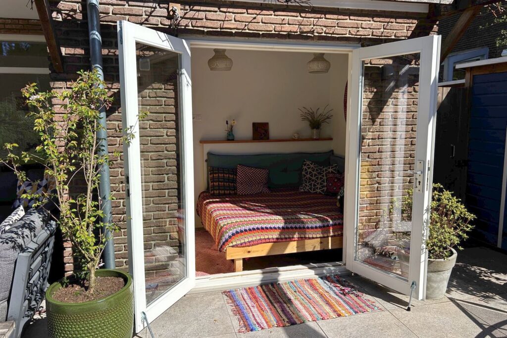 Aan de voorzijde een ruime slaapkamer met inbouwkast. Aan de achterzijde, dankzij de