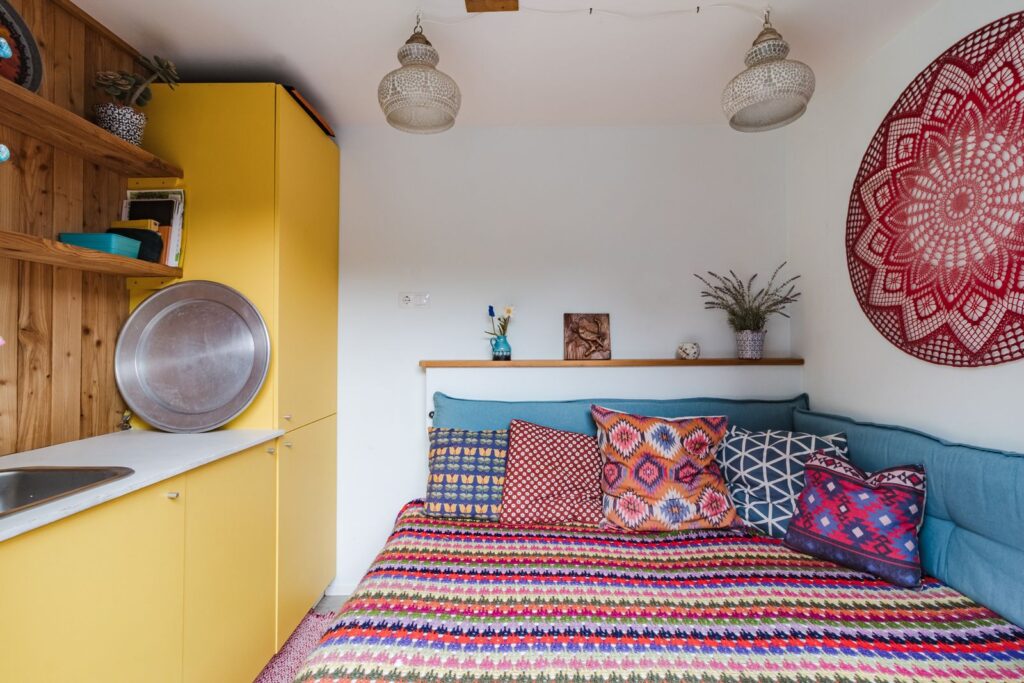 hobby-/tv-kamer en aan de achterkant een wasruimte met aansluitingen voor de