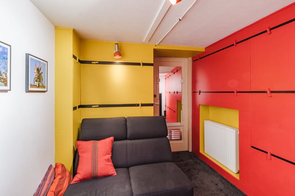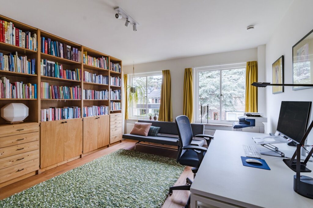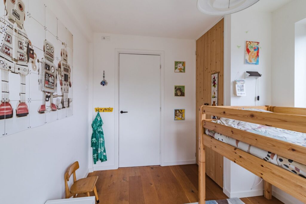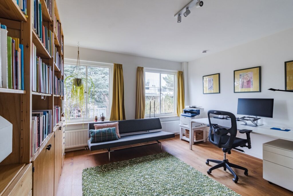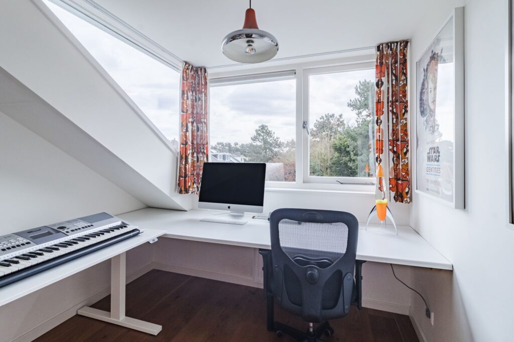 De derde, kleinere slaapkamer doet momenteel dienst als werkruimte, maar is eenvoudig