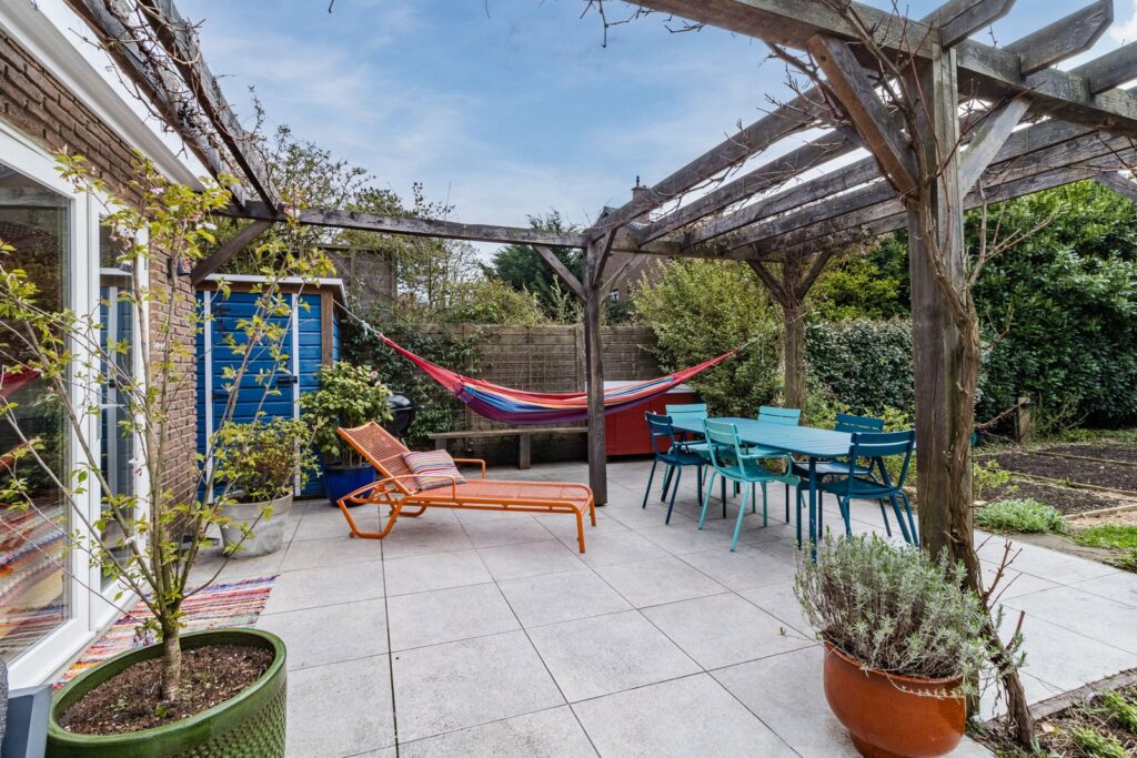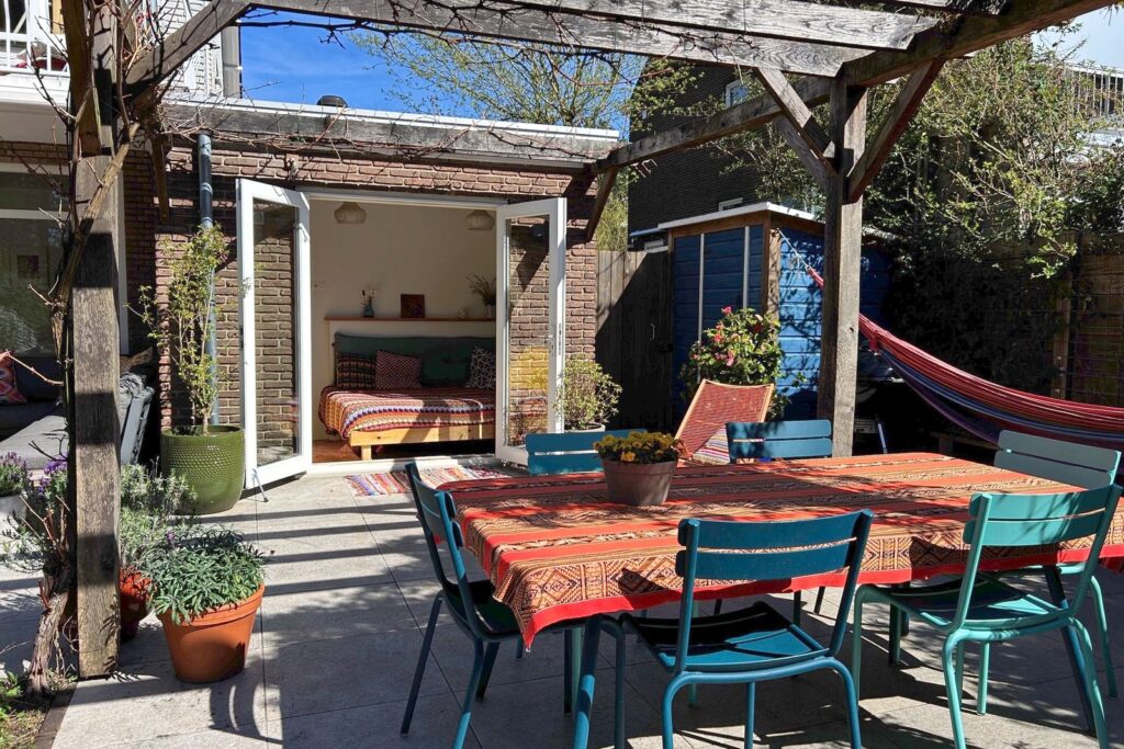 De parel van dit huis is de zuidgerichte tuin van 30 meter diep die veel privacy biedt. Hier