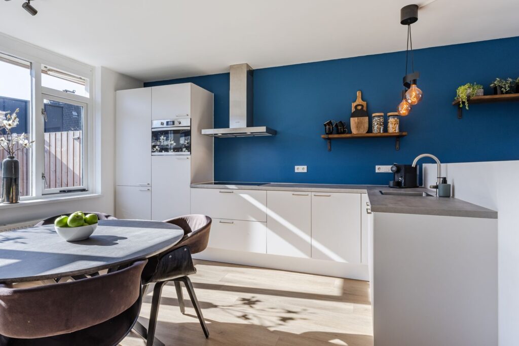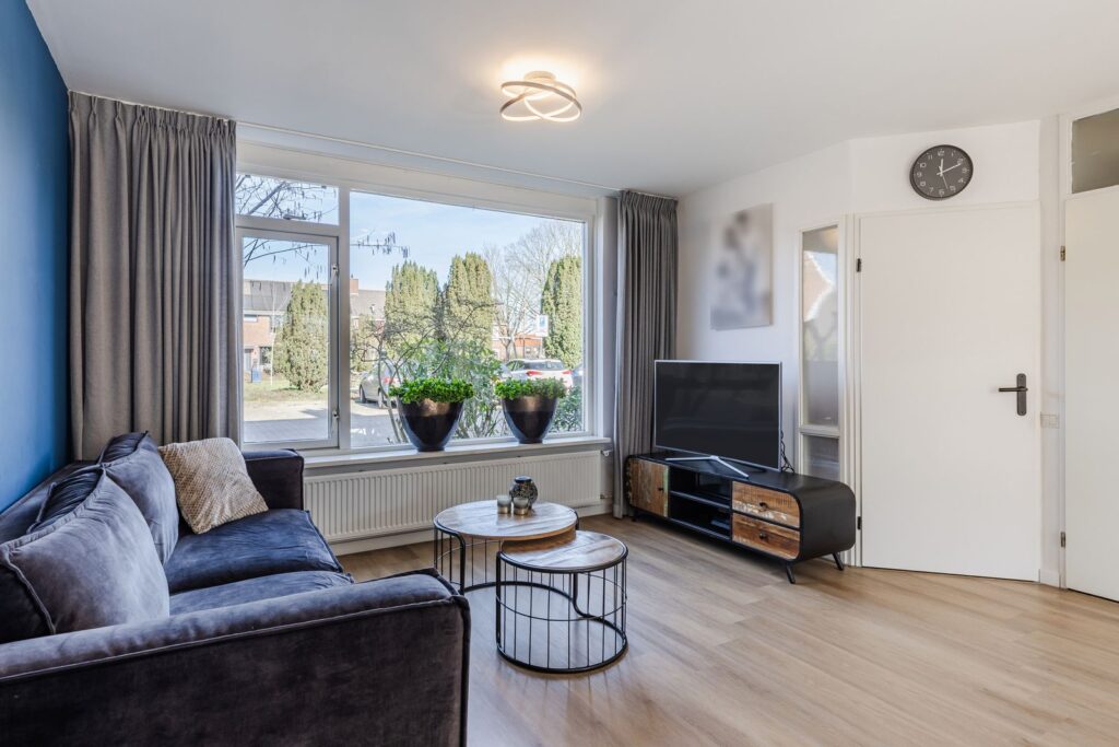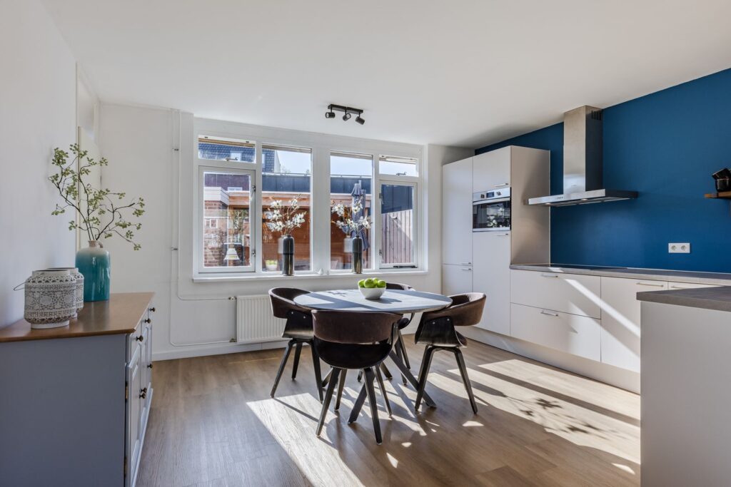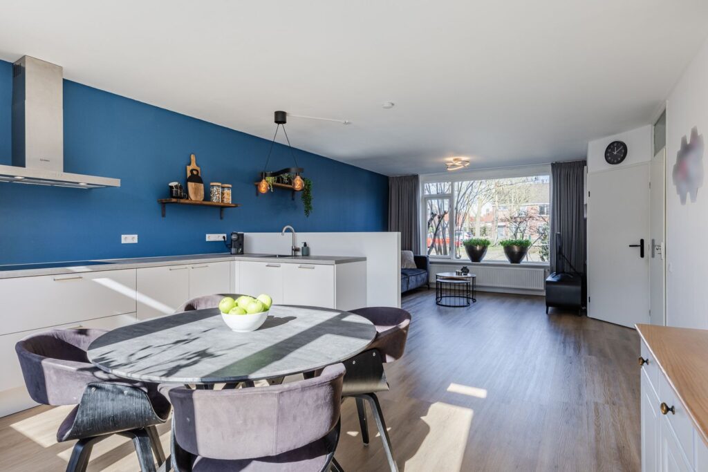 De woonkamer biedt volop ruimte voor een comfortabele zithoek en sluit naadloos aan op de moderne open keuken (2021), die is voorzien van alle gemakken. Dankzij de open opstelling blijf je altijd in contact met het woongedeelte, ideaal voor gezinnen en voor wie graag gasten ontvangt.