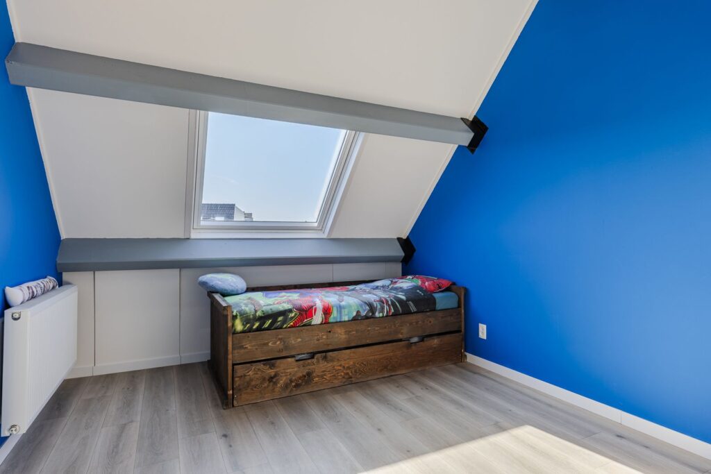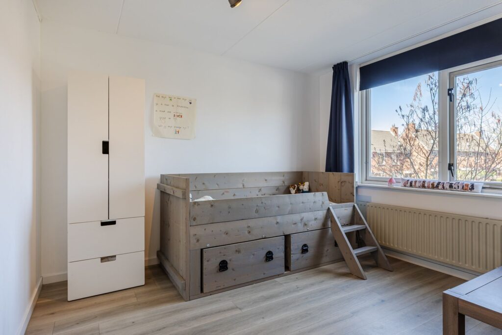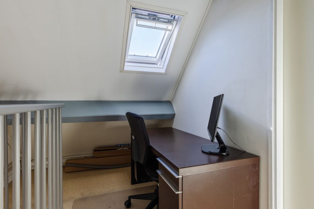 De tweede verdieping is een volwaardige woonlaag met verrassend veel ruimte. Hier vind je een vierde slaapkamer, die ook perfect dienst kan doen als werkkamer of hobbyruimte, plus extra bergruimte. Tevens bevinden zich hier de cv-opstelling (2020), de mechanische ventilatie en de aansluitingen voor wasmachine en droger, ieder op een eigen groep. Dit alles draagt bij aan comfort en gebruiksgemak.