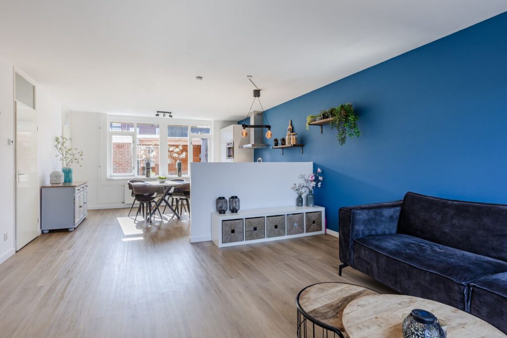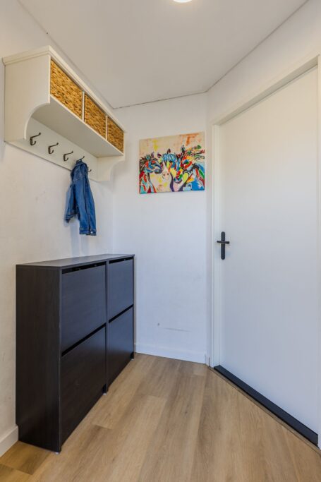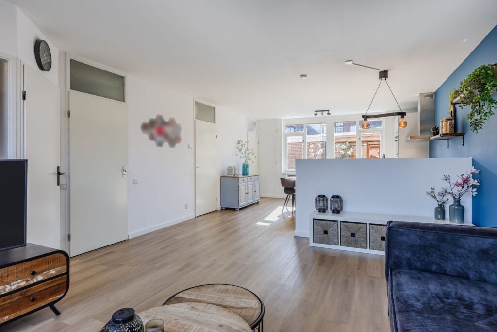 Via de voortuin bereik je de entree van de woning. In de hal bevindt zich de vernieuwde meterkast (2021) en vanuit hier loop je door naar het hart van het huis: de ruime en lichte woonleefruimte.