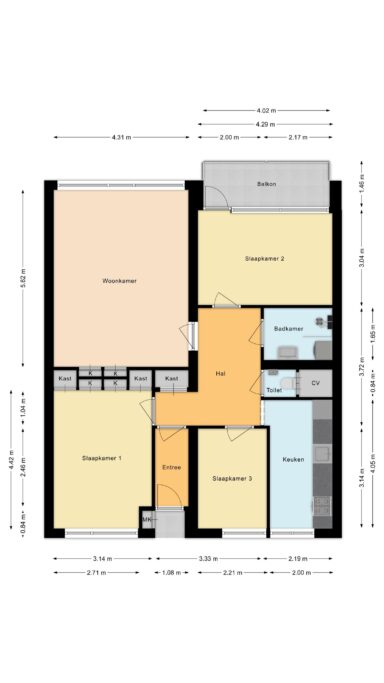 Instapklaar en licht 4-kamer appartement met balkon en berging